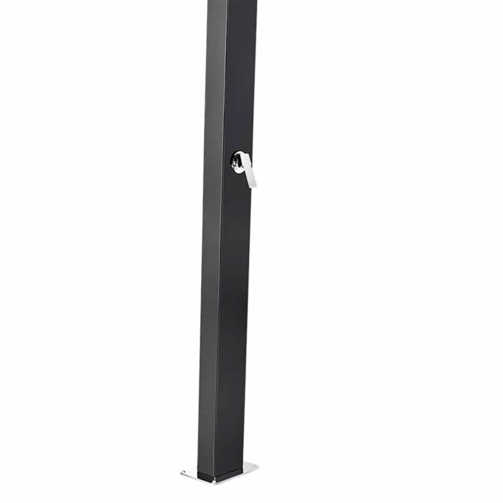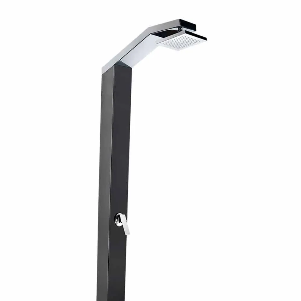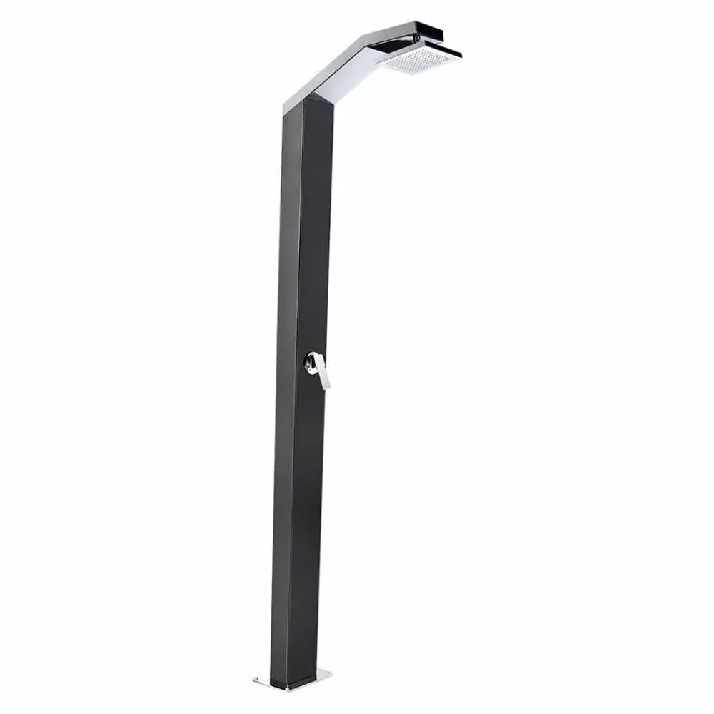 Solardusche für den Außenbereich , hergestellt in Italien, mit Säule aus Edelstahl AISI 304 (3 mm dick), schwarz ofenlackiert, und Duschkopfarm aus poliertem Stahl AISI 316L.