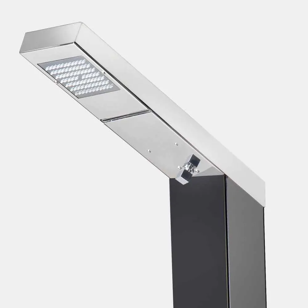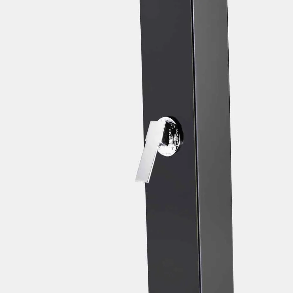 Solar-Gartendusche, hergestellt in Italien, mit Säule aus Edelstahl AISI 304 (3 mm dick), ofenlackiert in Schwarz, und Duschkopfhalterarm aus poliertem Stahl AISI 316L.