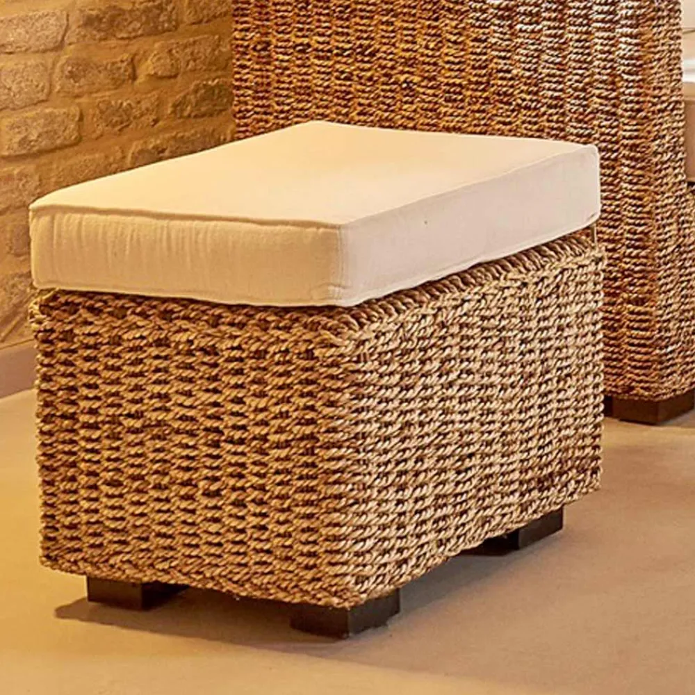 Outdoor-Pouf aus natürlicher Abaca-Faser mit Kissen