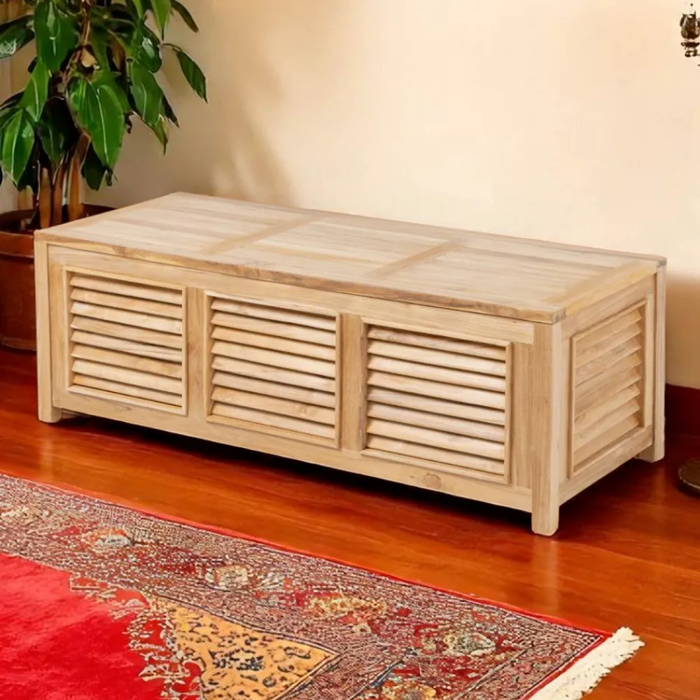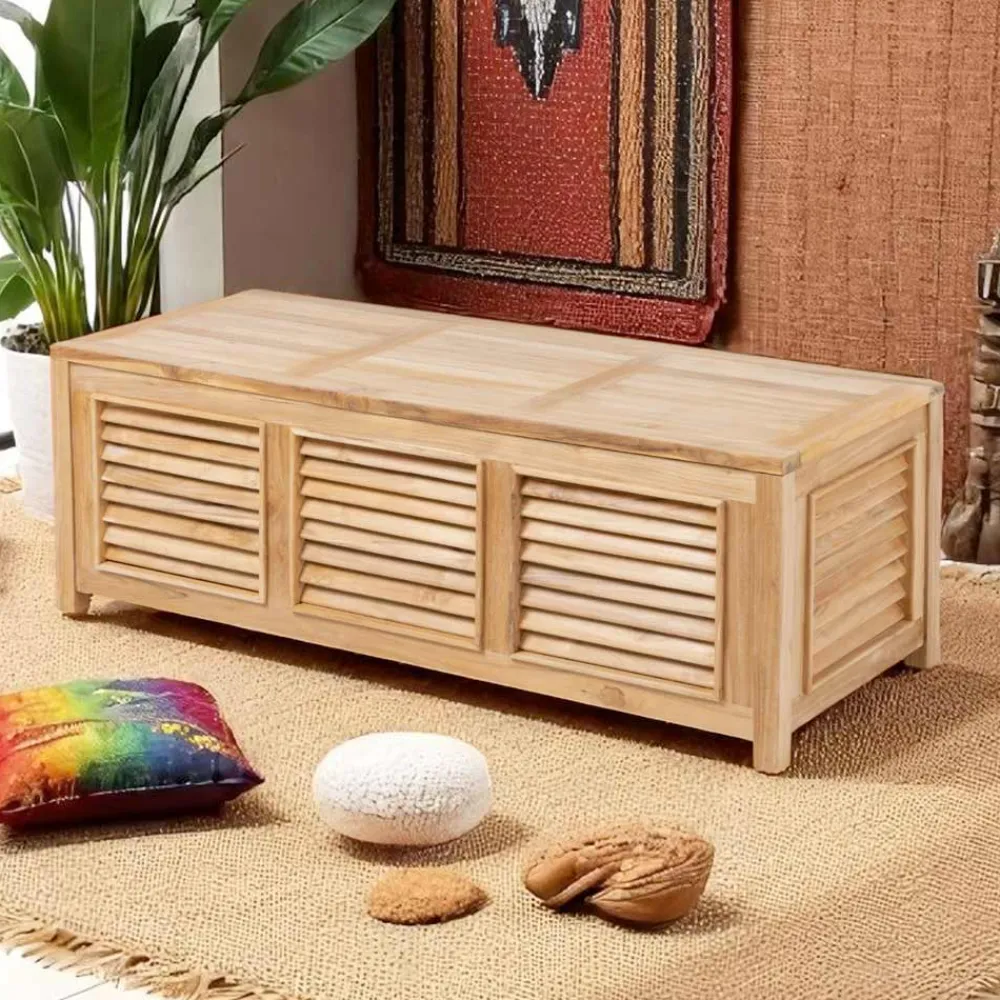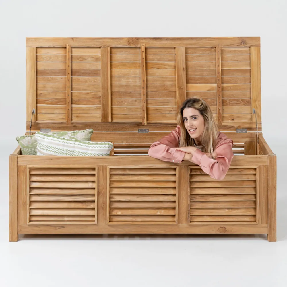 Truhe für den Außenbereich mit natürlicher Teakholzstruktur