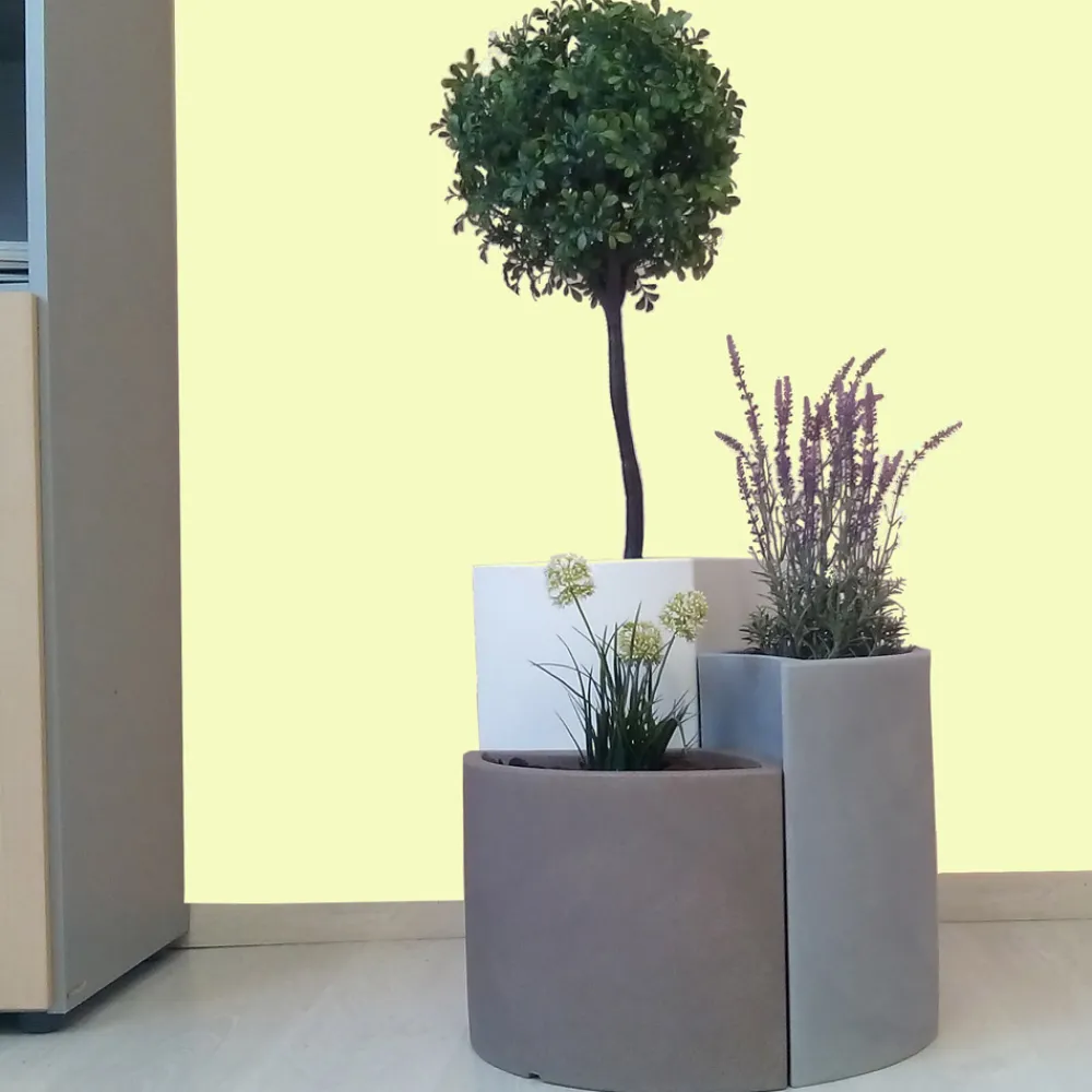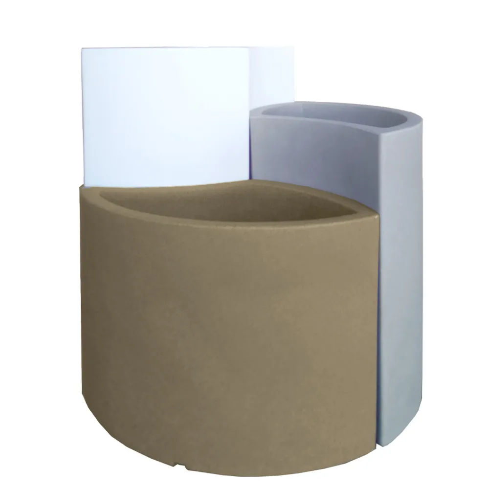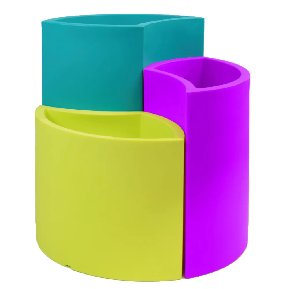 Set aus 3 modularen Vasen für den Innen- und Außenbereich. Erhältlich in 3 Höhen und mehreren Farben , um Kompositionen zu schaffen, die immer anders und in ihrer Art einzigartig sind. Hergestellt aus Polyethylen, ist es ideal für den Außenbereich , es widersteht niedrigen und hohen Temperaturen, UV-Strahlen, Stößen, behält seine Form intakt und seine Farben unverändert.