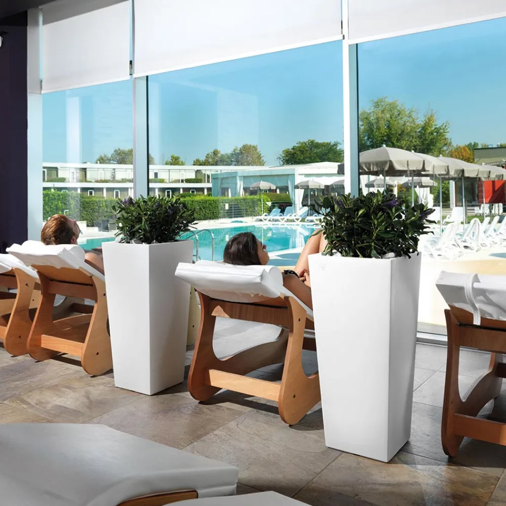 Quadratische Außenvase aus farbigem Polyethylen. Made in Italy