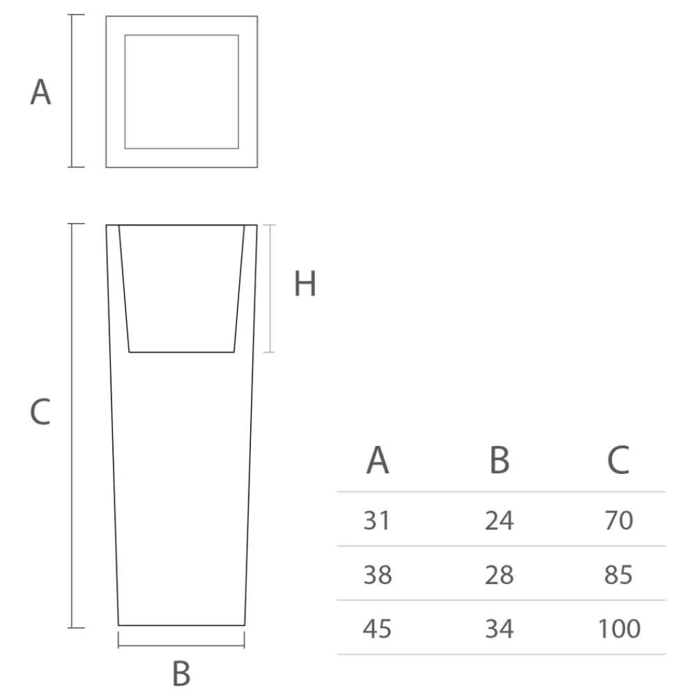 Diese in Italien hergestellte Außenvase besteht aus farbigem Polyethylen , einem hochwertigen Material, das dem Produkt maximale Widerstandsfähigkeit und hohe Stabilität verleiht. Dieses Einrichtungselement zeichnet sich durch ein minimalistisches und originelles Design aus, das aus essentiellen Linien und einer quadratischen Form besteht, die sich leicht nach außen ausdehnt, als ob sie Pflanzen und Blumen mit Wärme und Eleganz willkommen heißen würde.