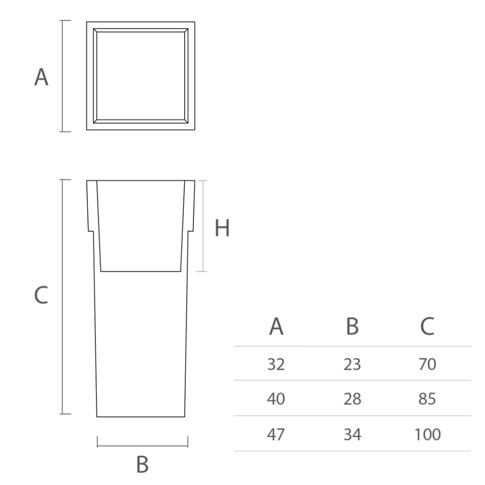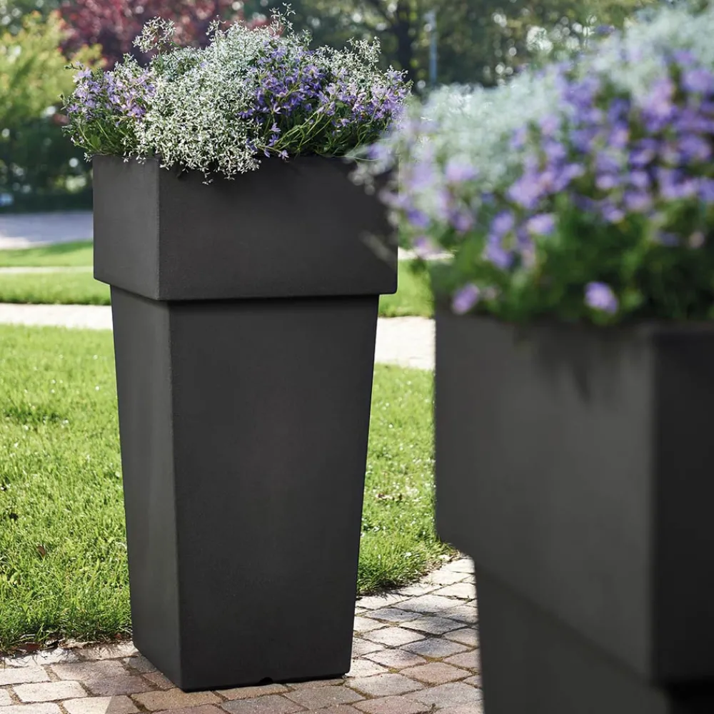 Quadratische Außenvase aus farbigem Polyethylen. Made in Italy
