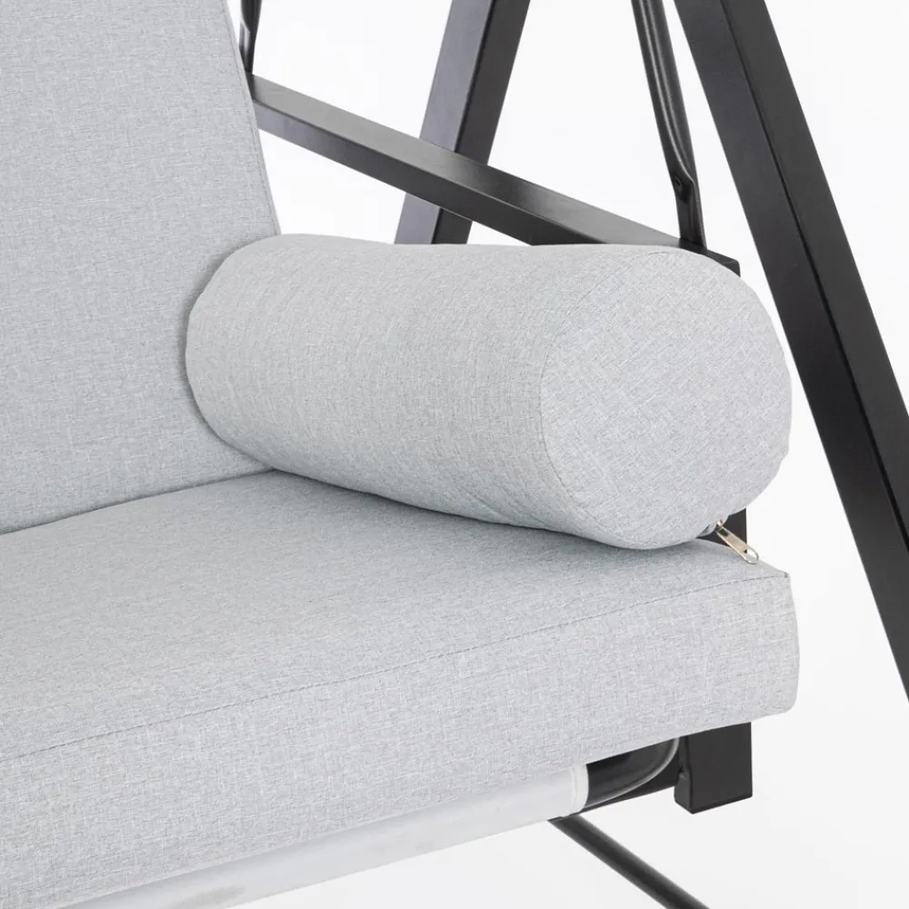 Diese Gartenschaukel ist eine Oase der Ruhe und Entspannung und bereichert mit ihrem eleganten und komfortablen Design jeden Außenbereich. Die solide lackierte Metallstruktur sorgt nicht nur für Stabilität, sondern auch für eine starke und moderne Ästhetik. Die weichen und einladenden Kissen versprechen stundenlangen Komfort, perfekt, um in eine spannende Lektüre einzutauchen oder ein süßes Nickerchen im Schatten zu genießen.