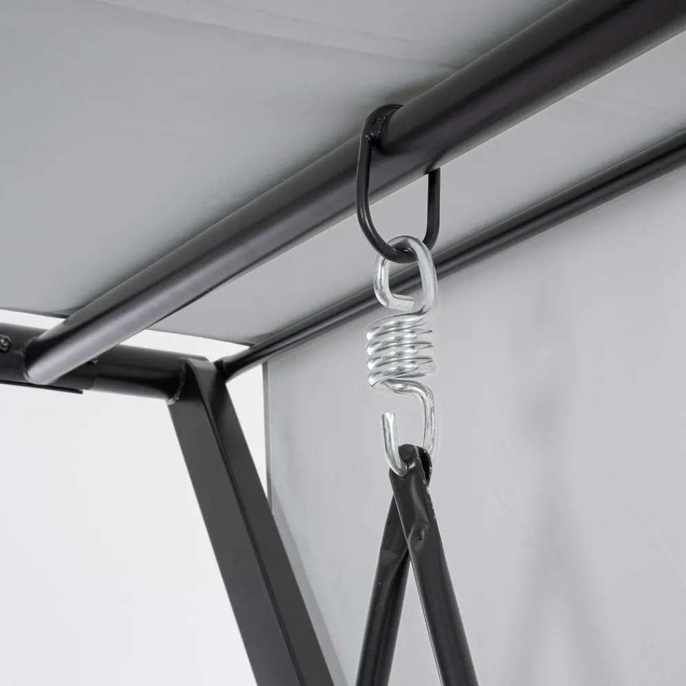 Das verstellbare Sonnendach bietet Schutz vor Sonnenstrahlen, sodass Sie den Schatten nach Ihren Wünschen anpassen können, während die seitlichen Vorhänge für einen Hauch von Privatsphäre und zusätzlichen Schutz sorgen. Diese Schaukel ist mehr als nur ein Sitz; Es ist ein persönlicher Zufluchtsort in Ihrem Garten , eine Einladung, eine Pause von der Hektik des Alltags einzulegen und die Freude an der Zeit im Freien wiederzuentdecken. Diese Schaukel eignet sich perfekt für alle, die auf der Suche nach einer Ecke der Ruhe und des Stils sind, und ist ideal, um das Entspannungserlebnis in Ihrem Außenbereich zu steigern.