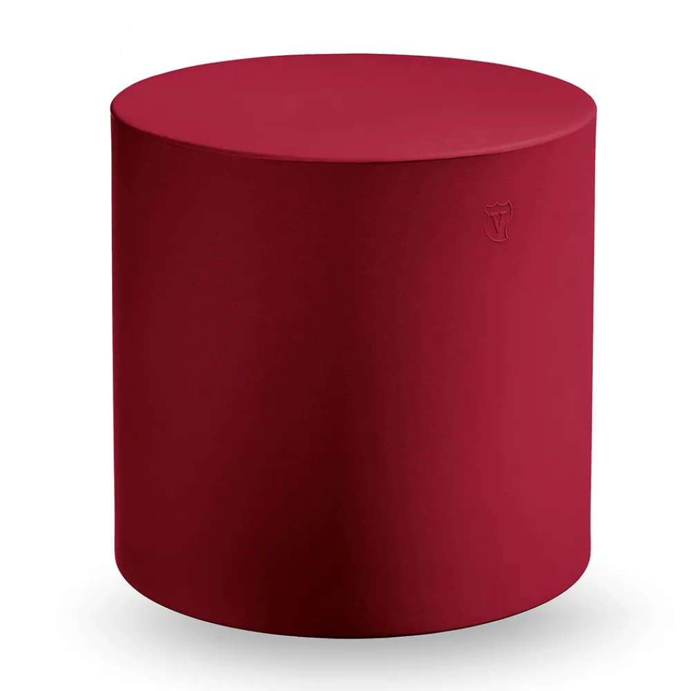 Gartenhocker aus farbigem Polyethylen in Zylinderform. Hergestellt in Italien.