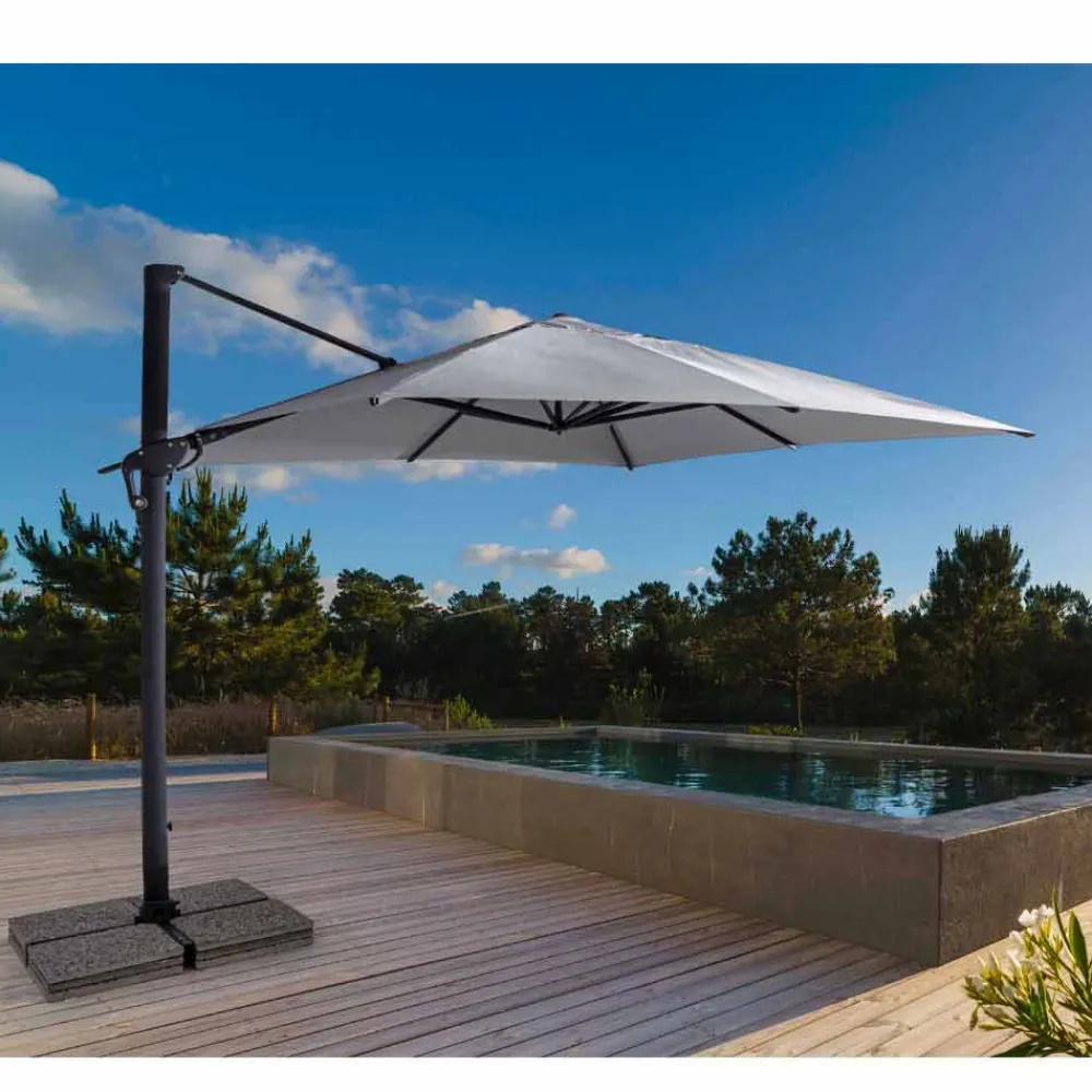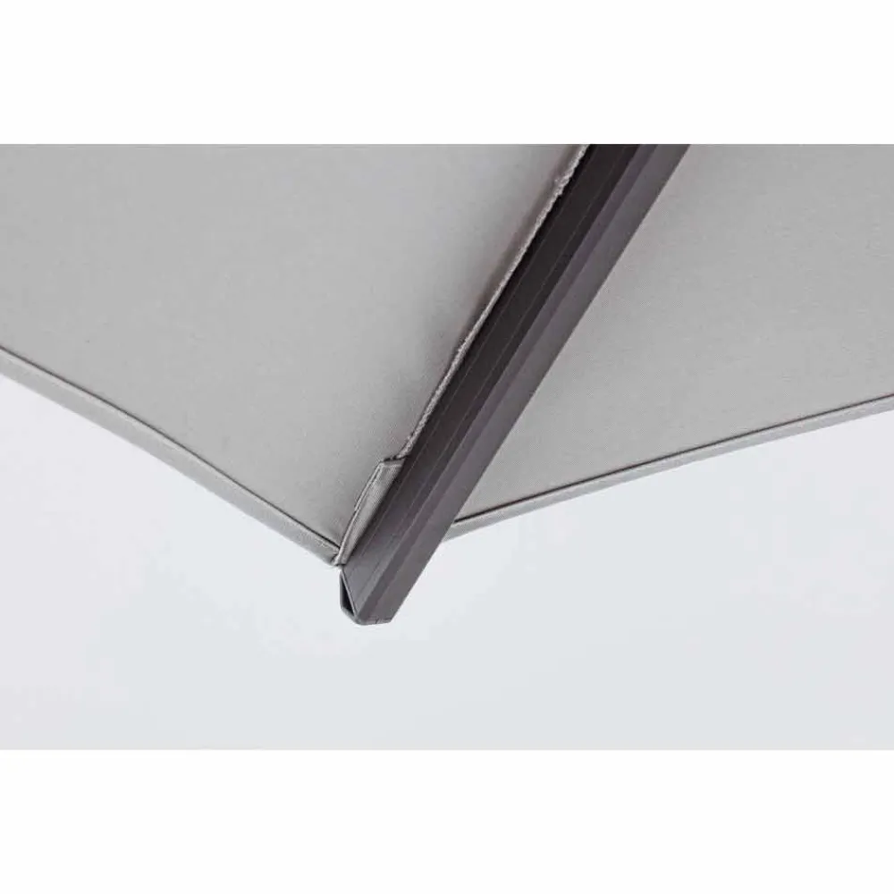 3×3 Gartenschirm mit hellgrauem Polyestergewebe.