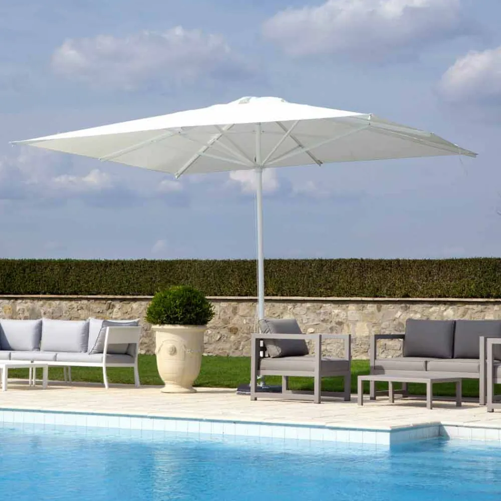 Einfach, funktional und mit modernem Design passt sich dieses Möbelstück auf einwandfreie Weise jeder Situation im Freien wie Schwimmbädern, Gärten und Terrassen an. Es bietet einen hervorragenden Schutz vor Sonneneinstrahlung und bereichert gleichzeitig die Ästhetik der Umwelt auf einfache Weise und mit Persönlichkeit.