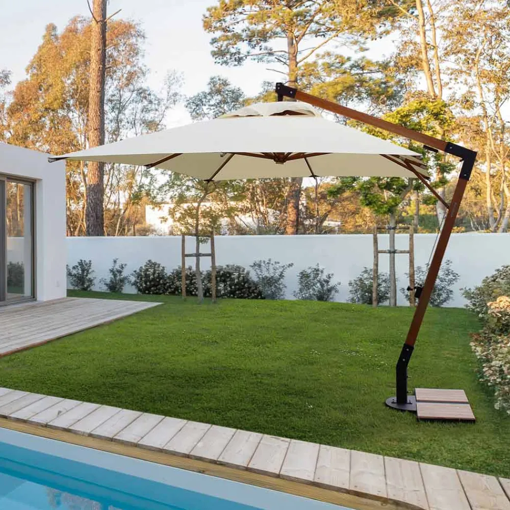 Gartenschirm 3×4 mt aus Polyester mit Holzstruktur, Qualitätsartikel.