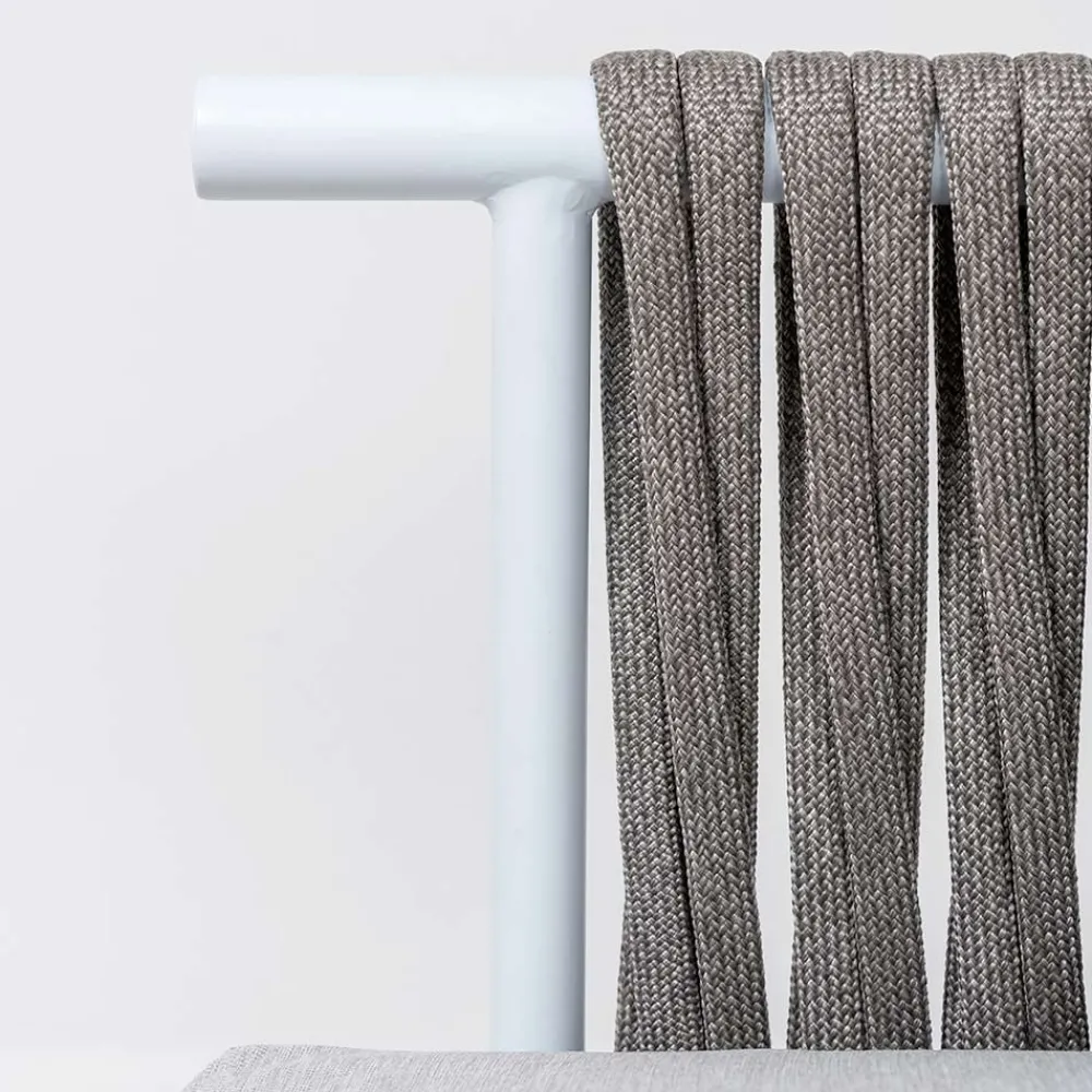 Die geflochtenen Seile sind von höchster Qualität. Sie werden aus verschiedenen Materialien hergestellt, die alle spezifische Eigenschaften für den Außenbereich aufweisen: Sie gewährleisten eine hohe Beständigkeit gegen Regen, Salz, vorzeitige Verfärbung und Schimmel. Um eine hohe mechanische Widerstandsfähigkeit zu gewährleisten, sollte der Kontakt der Fasern mit scharfen oder schneidenden Gegenständen, die sie irreversibel beschädigen könnten, vermieden werden. Für die Reinigung empfehlen wir, wenn nötig, eine Bürste mit weichen Borsten und eine neutrale Seife mit warmem Wasser zu verwenden.