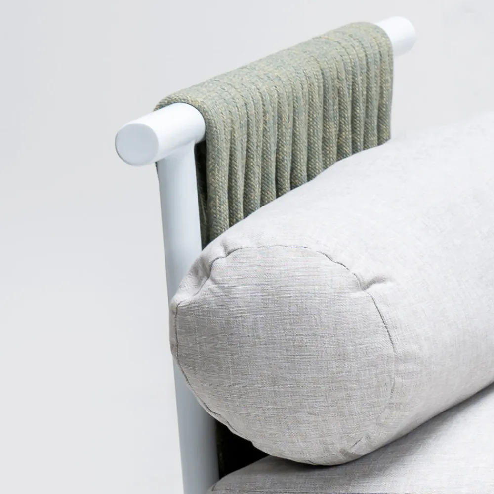 Die Kissen werden mit Polyurethanschaum und Dacronpolsterung hergestellt. Die Kissenbezüge werden immer aus Stoffen hergestellt, die speziell für den Außenbereich geeignet sind (mit Behandlungen und Eigenschaften der Lichtbeständigkeit und Wasserabweisung). Um ein Einlaufen zu vermeiden und die Eigenschaften des Gewebes zu erhalten, empfehlen wir eine chemische Reinigung oder Handwäsche bei niedrigen Temperaturen.