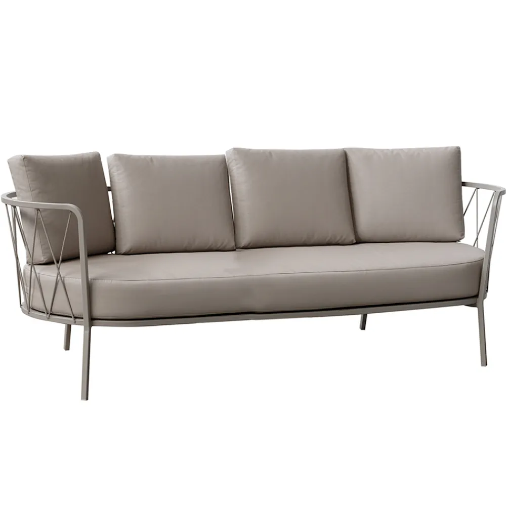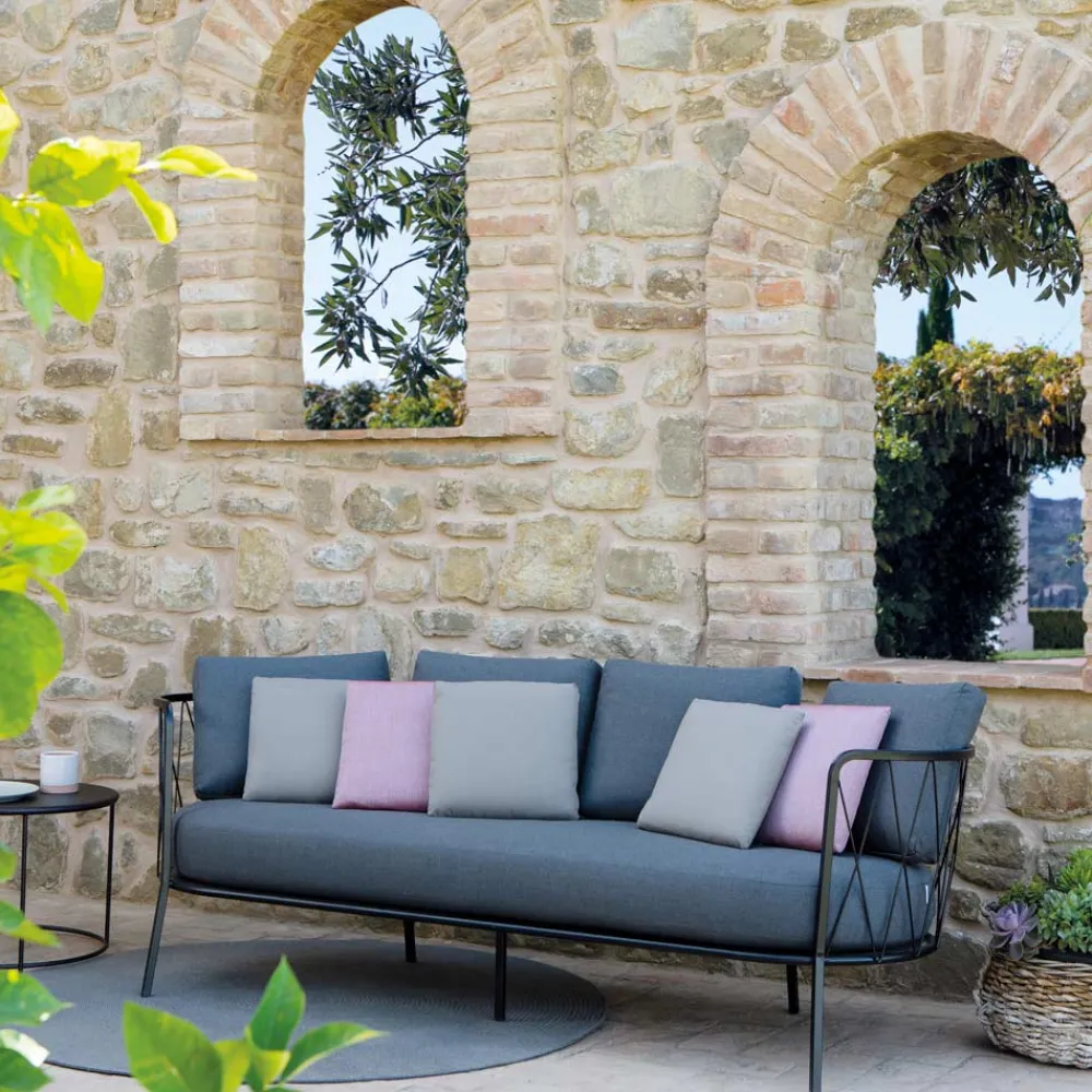3-Sitzer-Gartensofa aus Stahl mit Kissen, hergestellt in Italien.