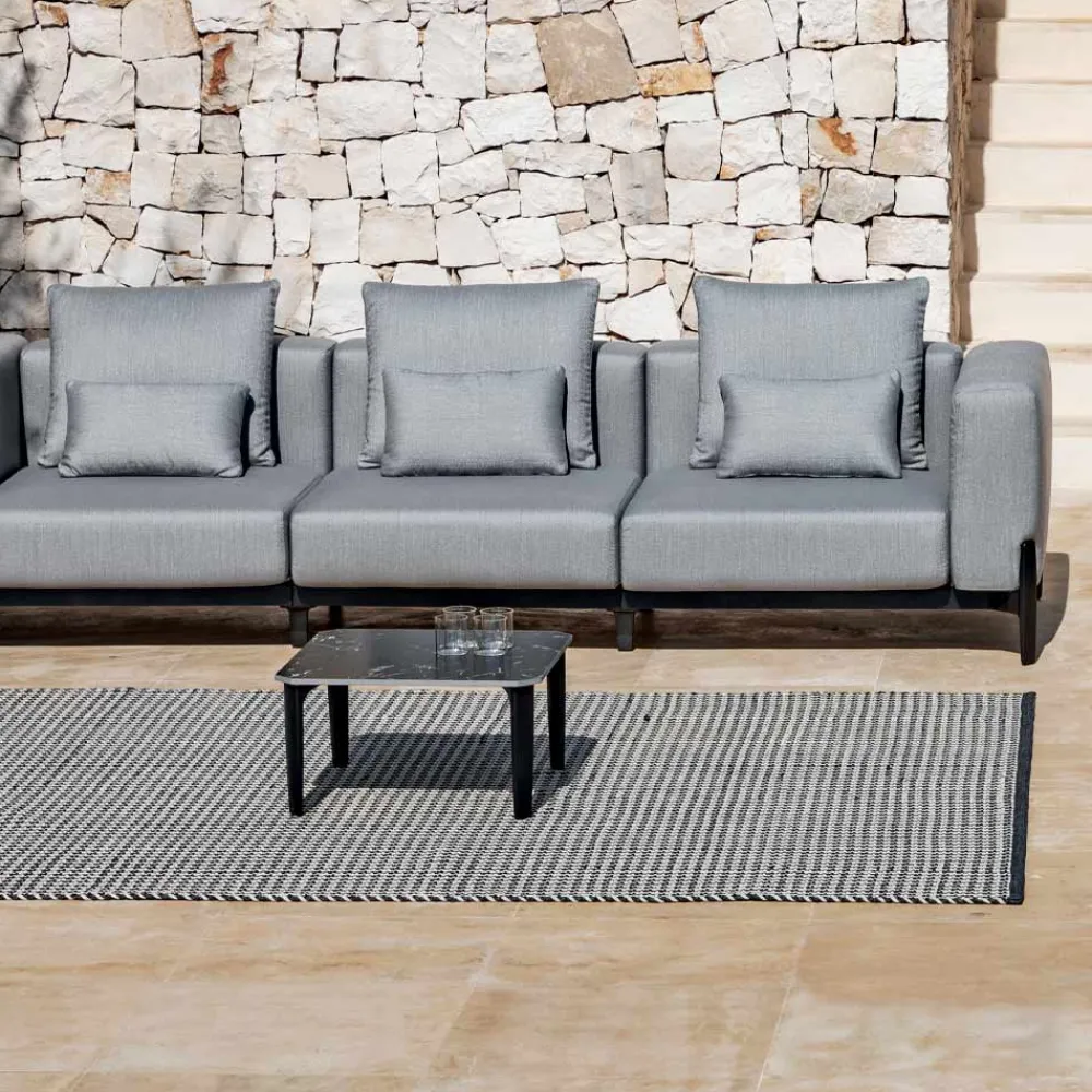 3-Sitzer-Outdoor-Design-Sofa aus Aluminium und Kissen aus wasserdichtem Stoff, hochwertige Made in Italy.