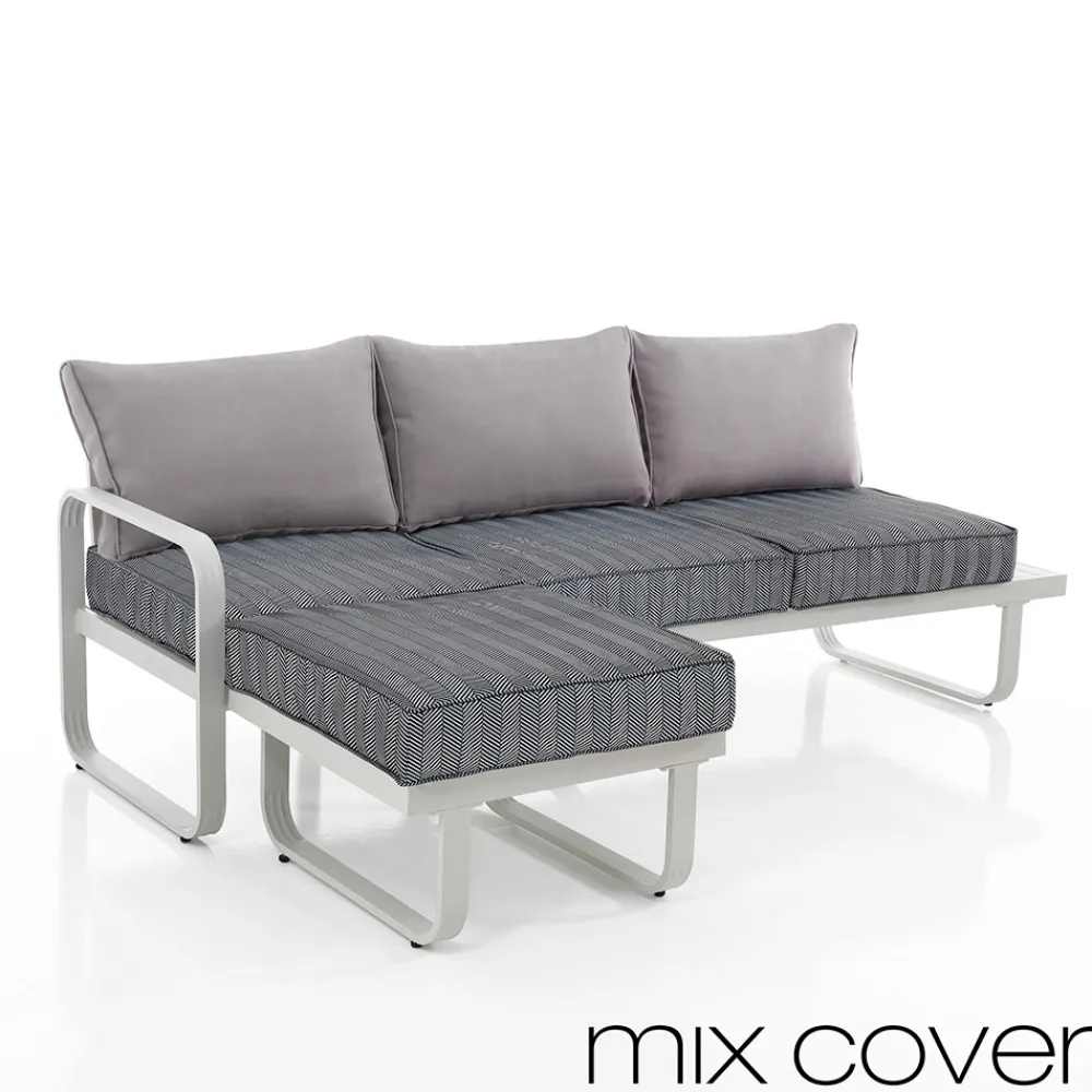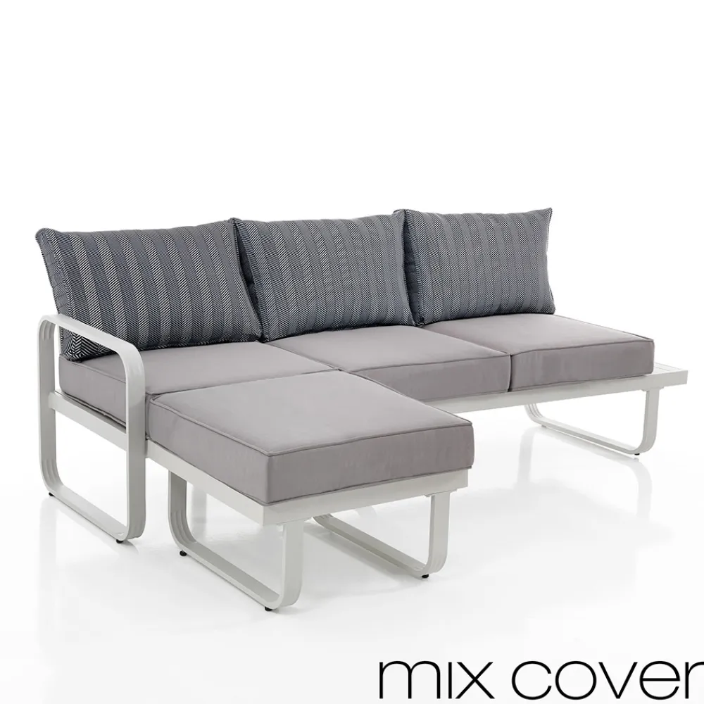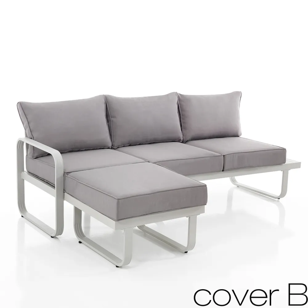 3-Sitzer-Sofa mit Aluminium-Hocker und wasserabweisenden Polyesterkissen