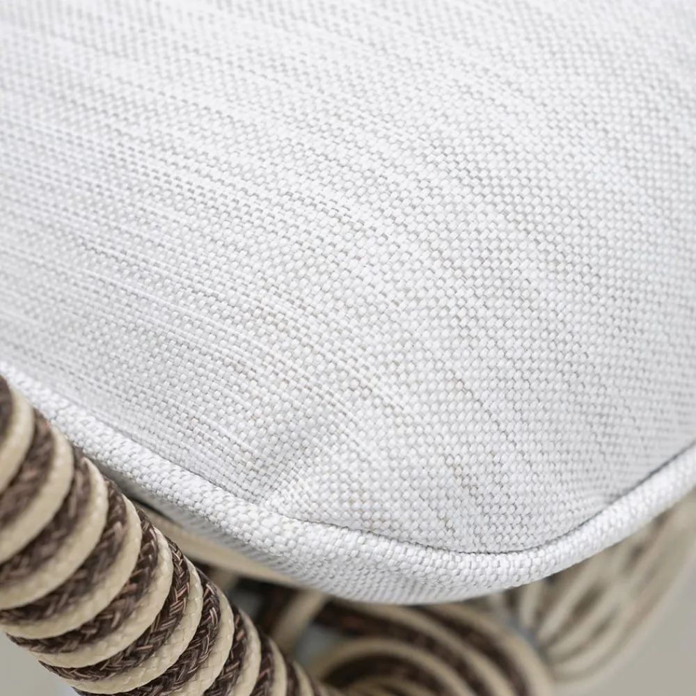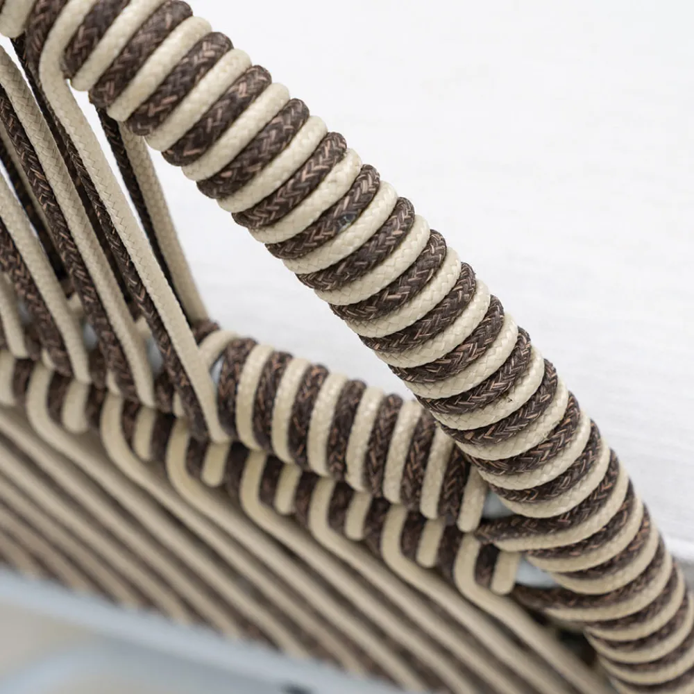 Die geflochtenen Seile sind von höchster Qualität. Sie werden aus verschiedenen Materialien hergestellt, die alle spezifische Eigenschaften für den Außenbereich aufweisen: Sie gewährleisten eine hohe Beständigkeit gegen Regen, Salz, vorzeitige Verfärbung und Schimmel. Um eine hohe mechanische Widerstandsfähigkeit zu gewährleisten, sollte der Kontakt der Fasern mit scharfen oder schneidenden Gegenständen, die sie irreversibel beschädigen könnten, vermieden werden. Für die Reinigung empfehlen wir, wenn nötig, eine Bürste mit weichen Borsten und eine neutrale Seife mit warmem Wasser zu verwenden.