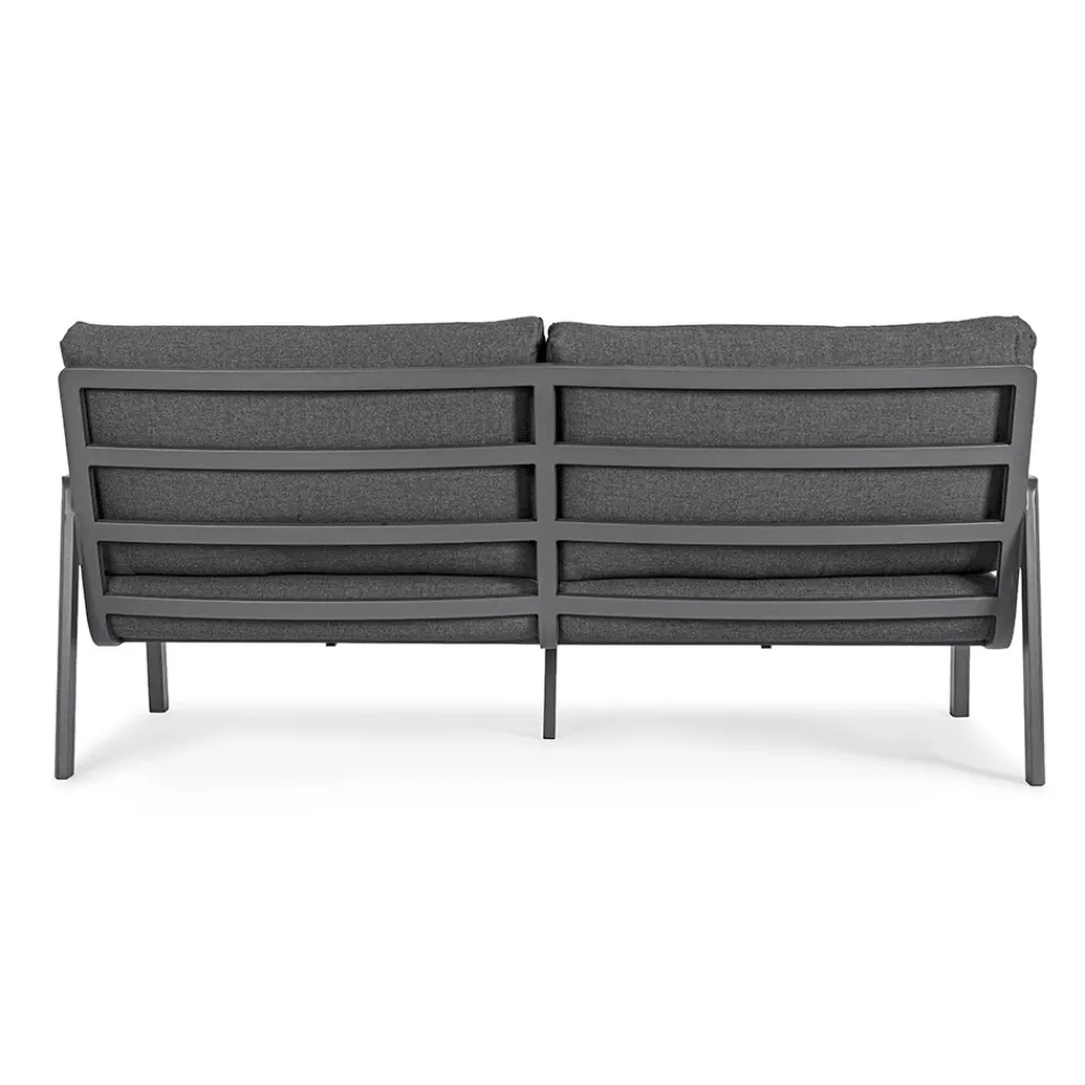 Hochwertiges Outdoor-Sofa mit Aluminiumstruktur und Sitz aus abnehmbarem Stoff.