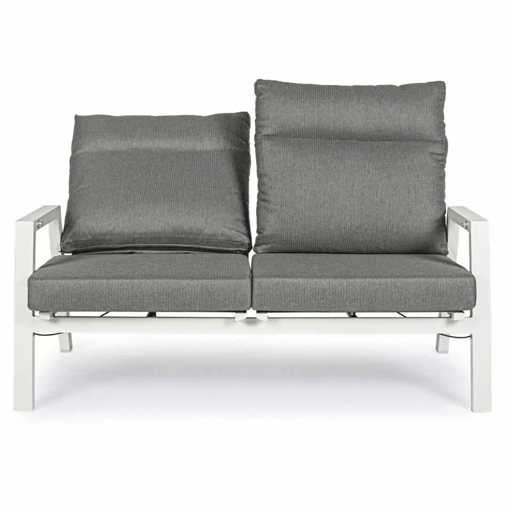 2-Sitzer-Outdoor-Sofa aus Aluminium und Stoff mit verstellbarer Rückenlehne.