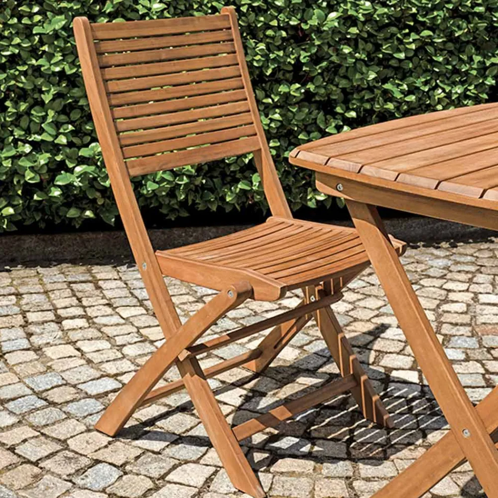 Dieser Klappstuhl aus Akazienholz ist perfekt für den Garten. Dieser fachmännisch gefertigte Stuhl vereint Funktionalität und Design und bietet ein außergewöhnliches Komforterlebnis im Freien.