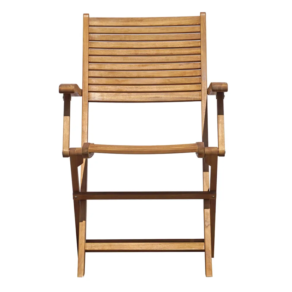 Outdoor-Stuhl komplett aus Akazienholz mit optionalen Armlehnen.