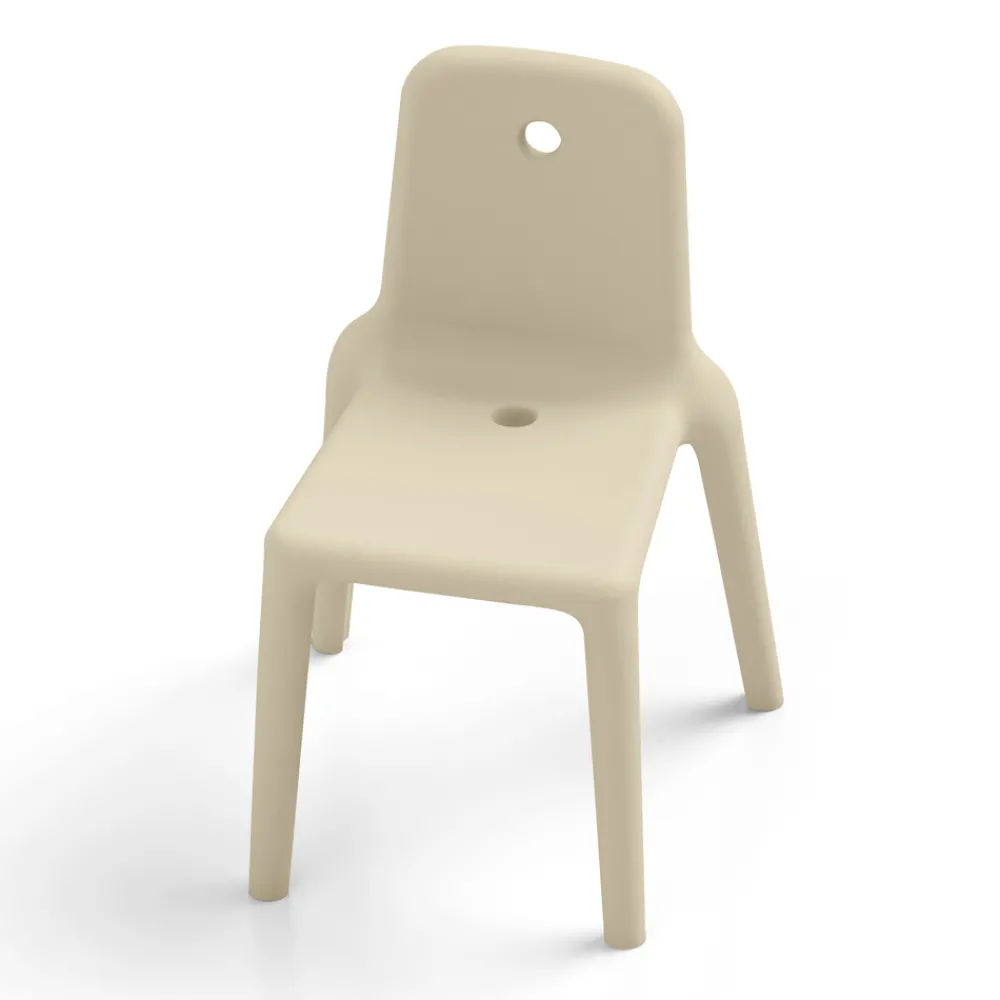 Dank der Verwendung von Polyethylen und seiner geringen Größe ist dieser Stuhl äußerst vielseitig einsetzbar , was durch seine fließenden und unterscheidbaren Merkmale unterstrichen wird. Er bietet die Möglichkeit, jede Art von Umgebung zu bereichern, sowohl im Innen- als auch im Außenbereich, und eignet sich perfekt für die Einrichtung von Entspannungs- und Ruhebereichen.