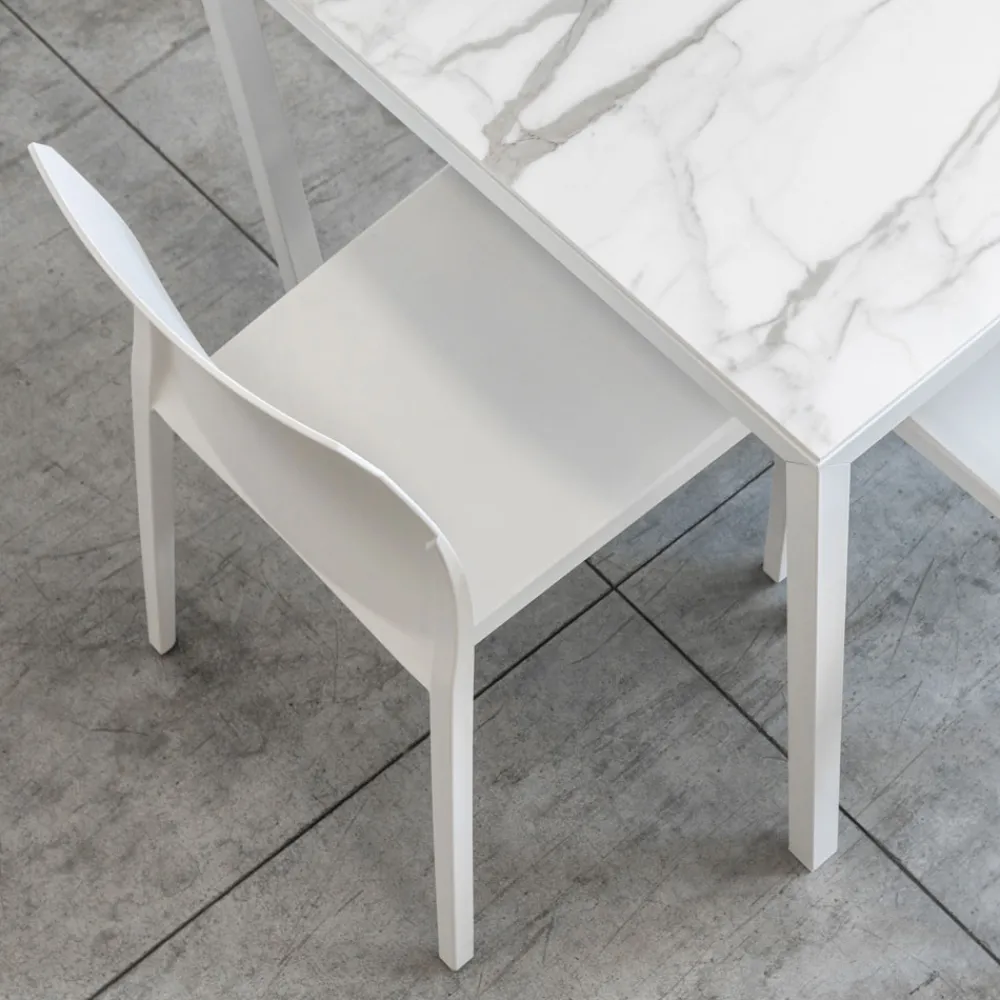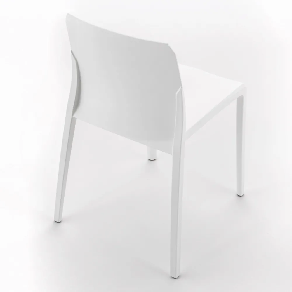 4 Esszimmerstühle aus glasfaserverstärktem Polycarbonat mit Soft-Touch-Oberfläche und geformt mit der Airmoduling-Gastechnologie der zweiten Generation, die darin besteht, die größten Abschnitte des Sitzes durch einen Gasstrom während des Injektionsprozesses von innen zu entleeren.