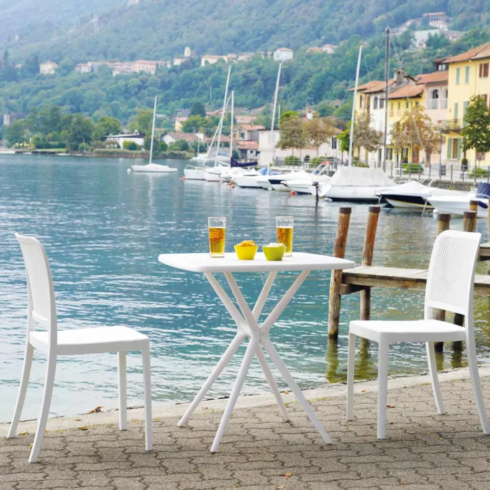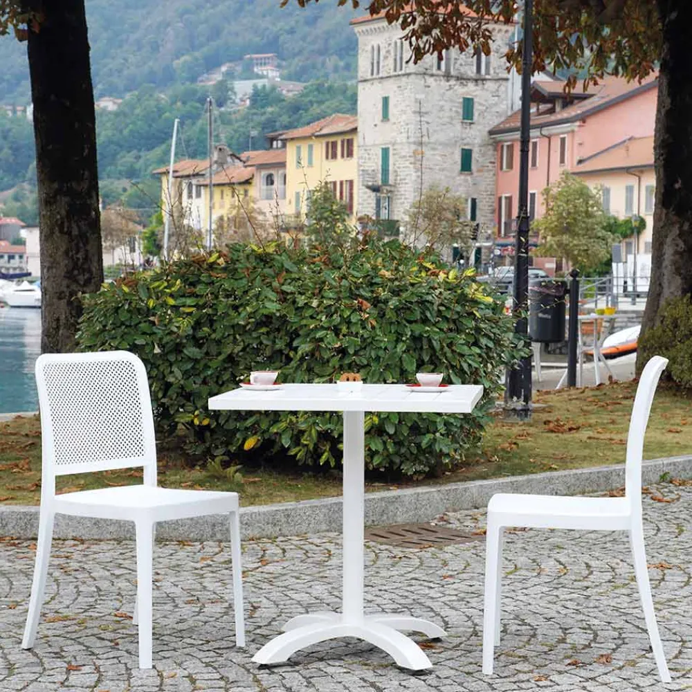Dieser Gartenstuhl besticht durch sein elegantes und minimalistisches Design und ist perfekt, um jedem Außenbereich einen Hauch von Stil zu verleihen. Die Polypropylenstruktur garantiert Haltbarkeit und Witterungsbeständigkeit und ist somit ideal für den täglichen Einsatz im Freien.