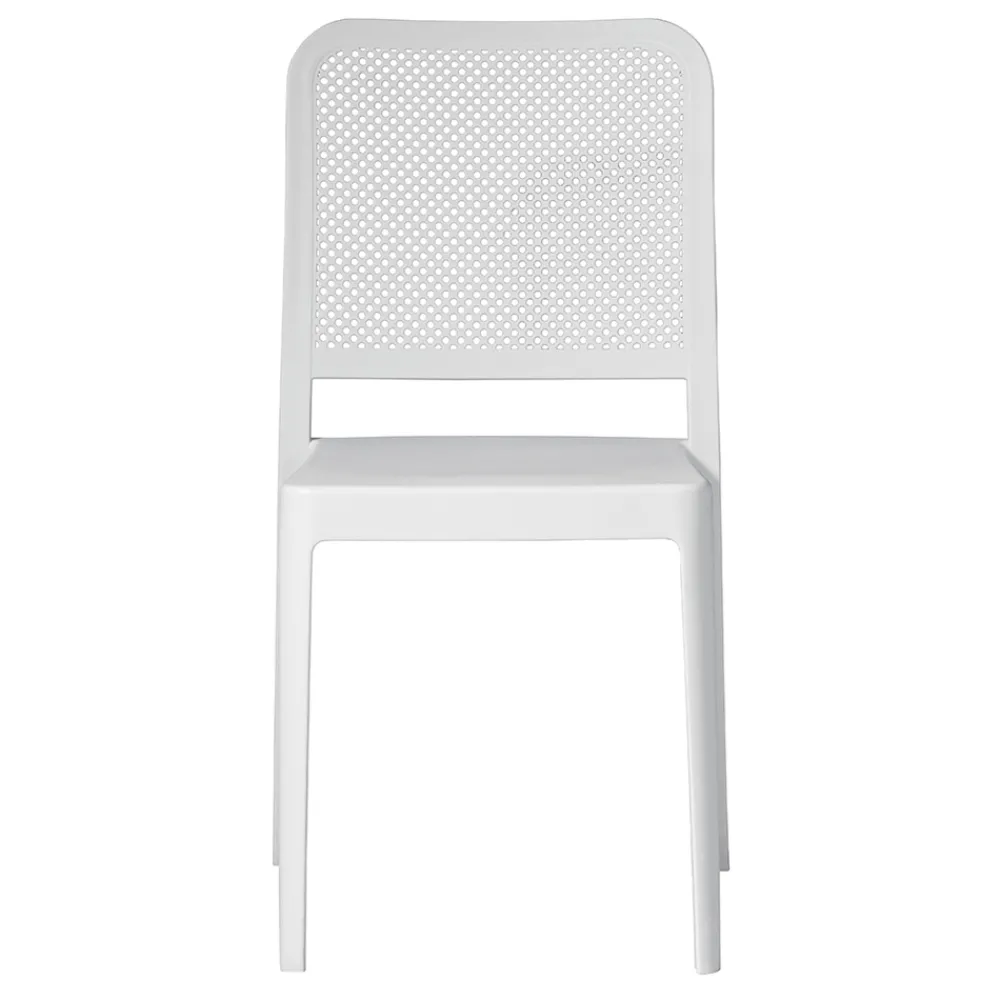 Perforierter Outdoor-Stuhl, komplett aus weißem Polypropylen mit Glasfaserzusatz, UV-beständig.