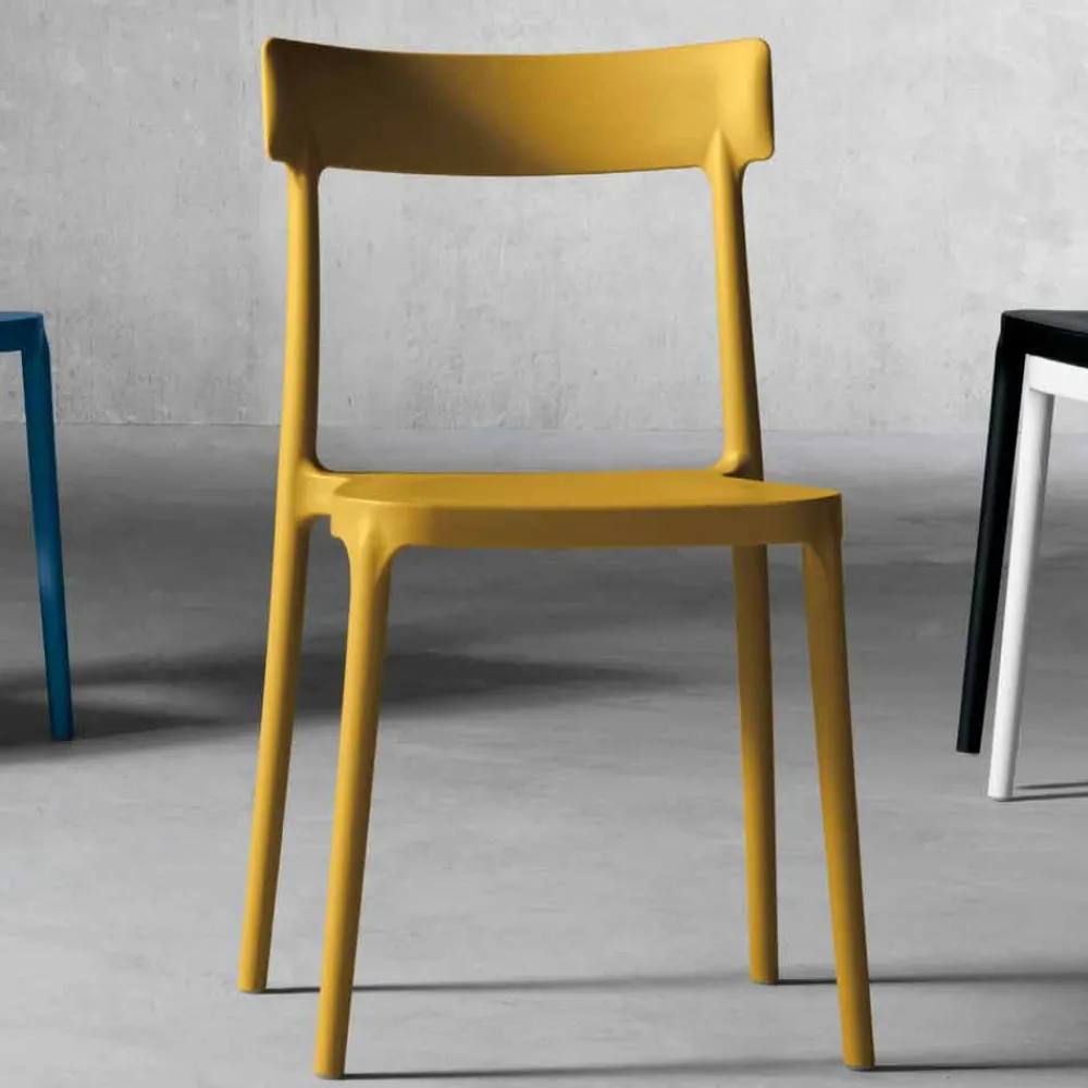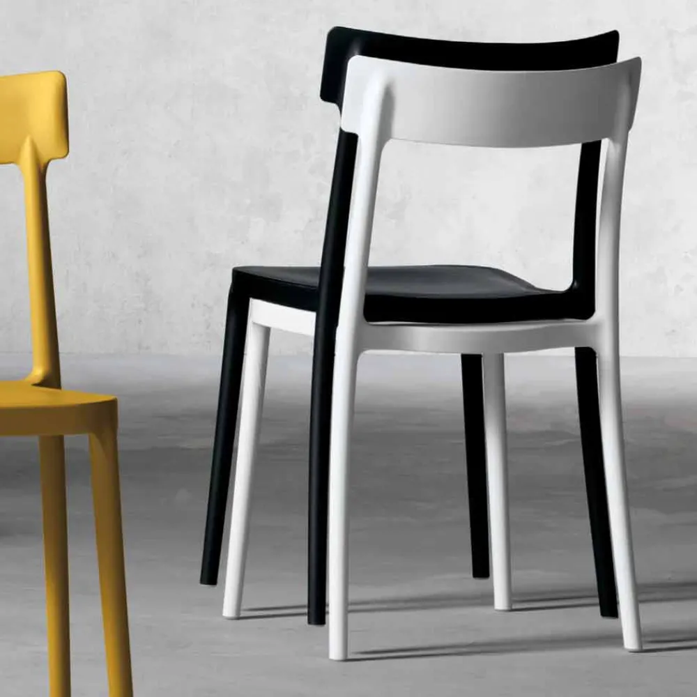Peia ist der stapelbare Outdoor- / Indoor-Stuhl, der sich durch ein modernes und selbstloses Design auszeichnet.