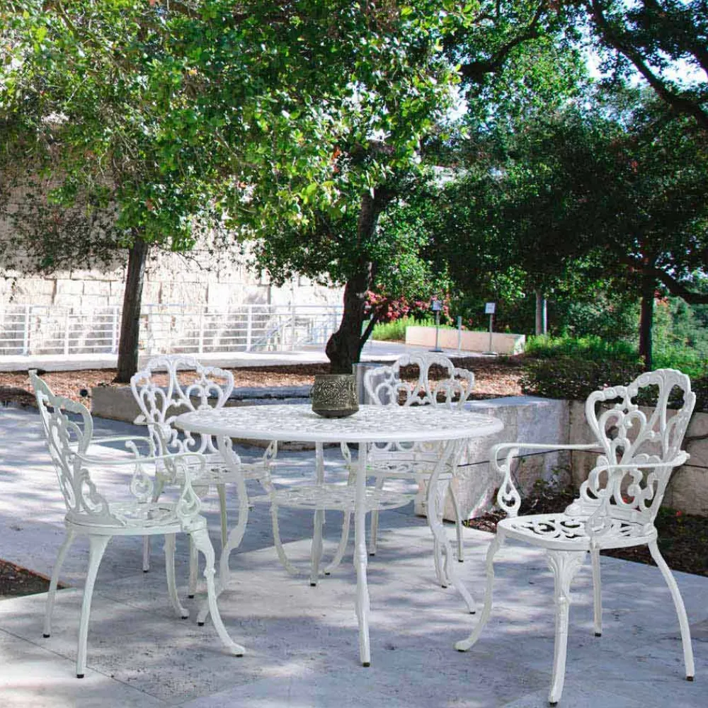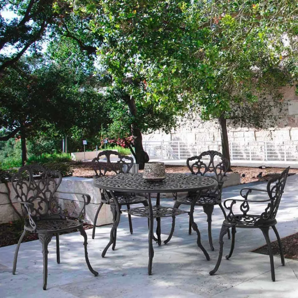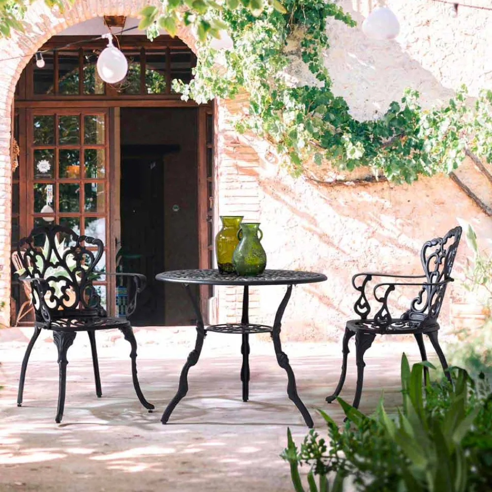 Gartenstuhl aus matt anthrazit lackiertem Aluminium, 2 Stück.