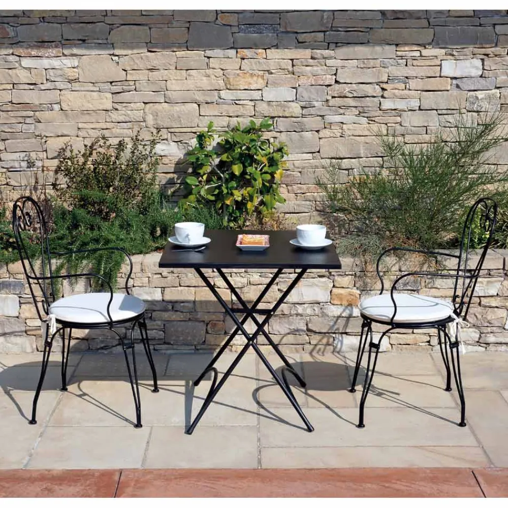 Gartenstuhl mit Sitz und Struktur aus schwarzem Eisen in modernem Design
