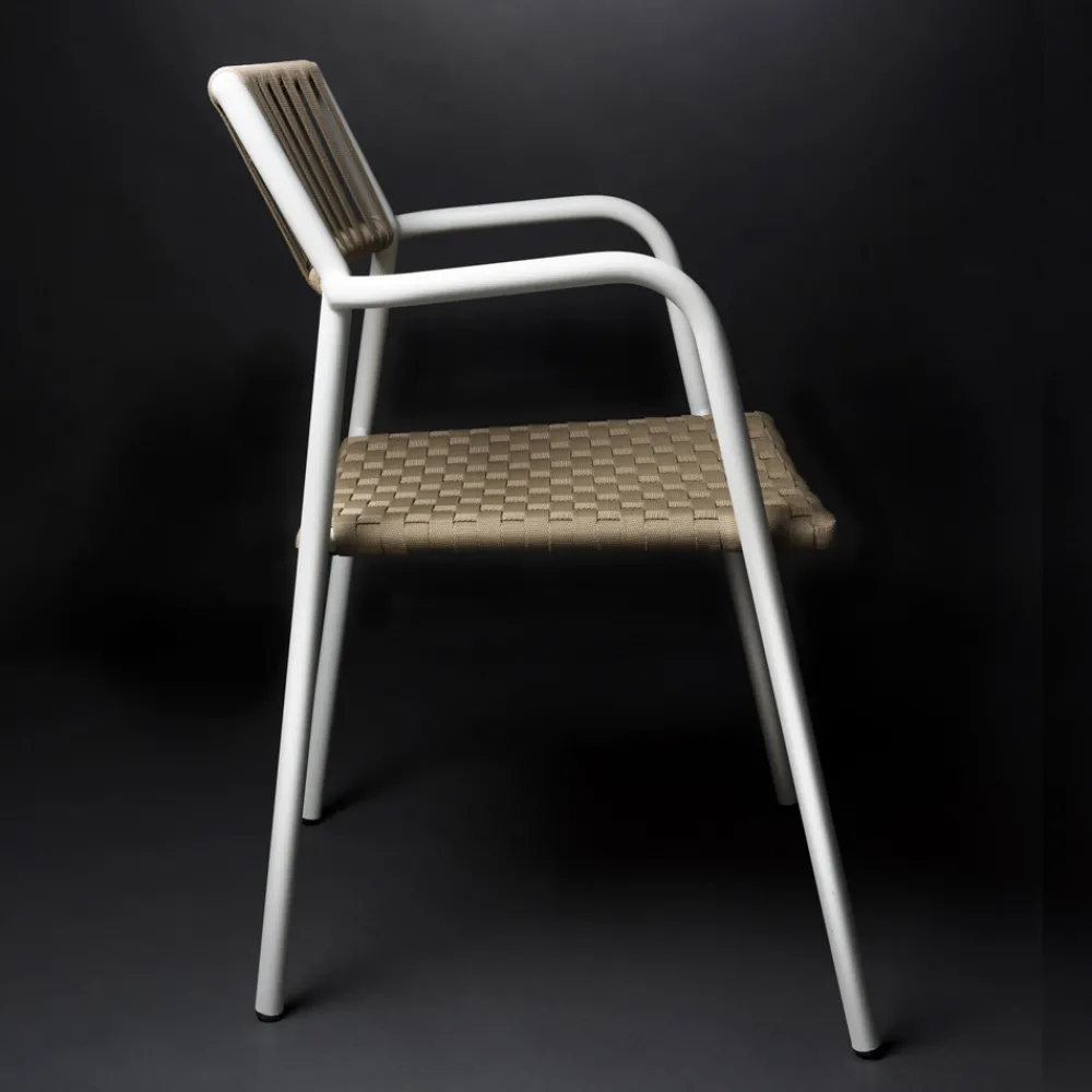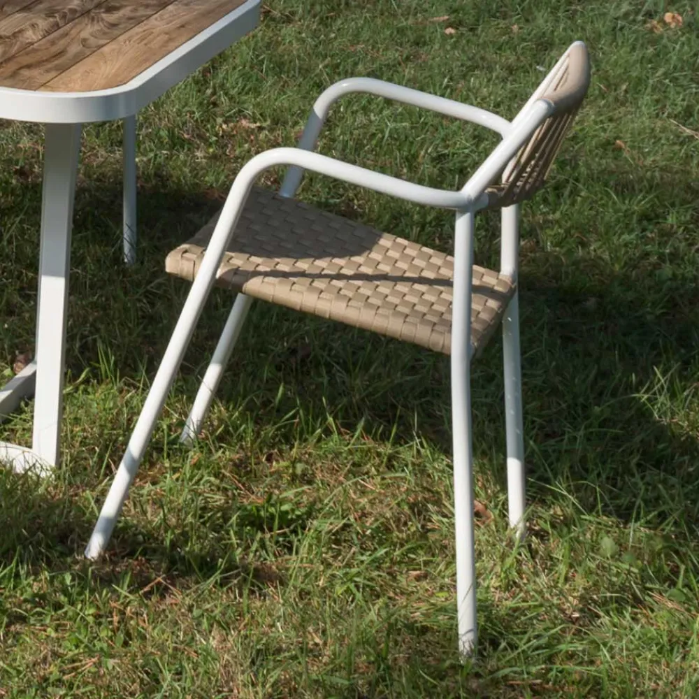 Außenstuhl mit Armlehnen aus Aluminium und gewebtem Stoff