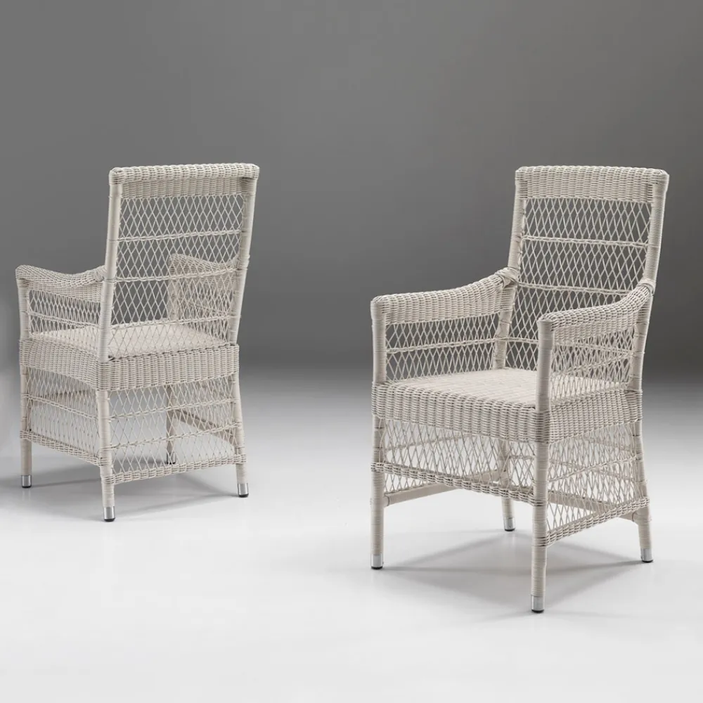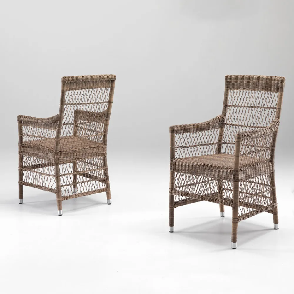 Außenstuhl mit Armlehnen aus handgeflochtener Polyrattanfaser