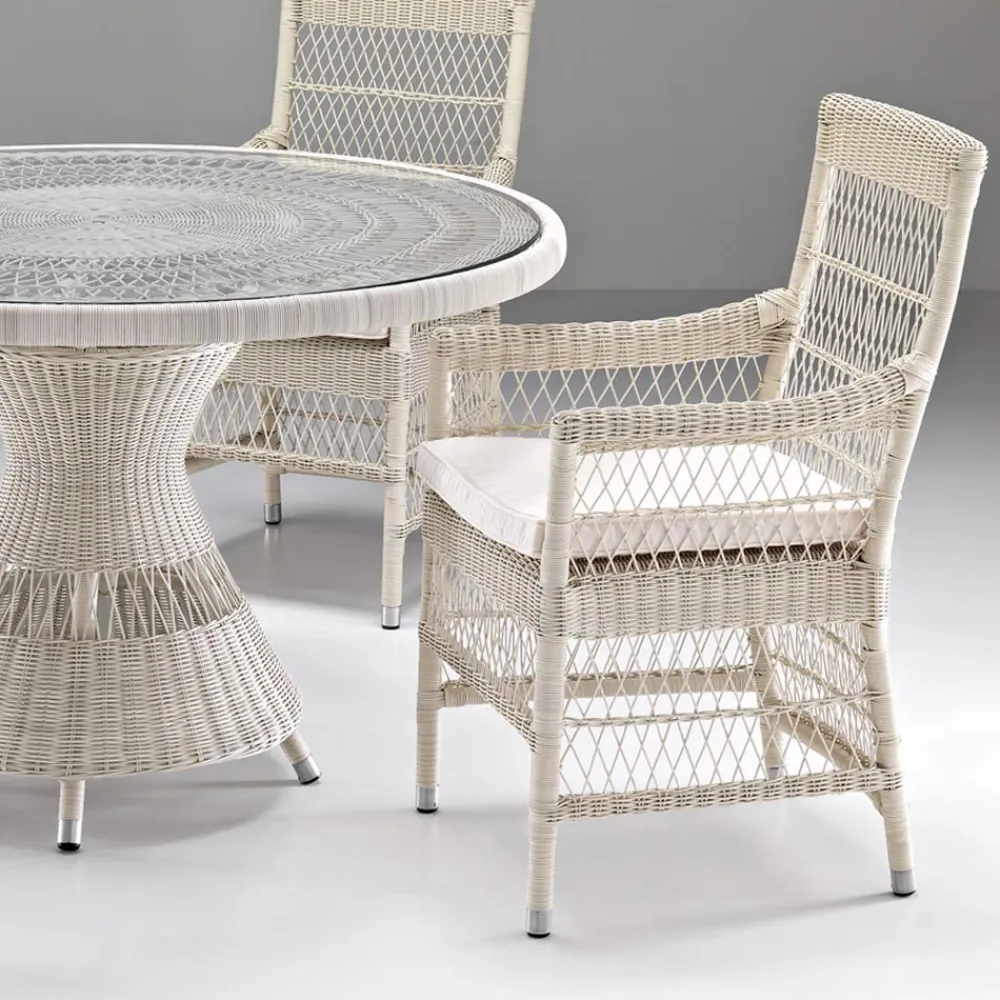 Der Geflechtstil ist raffiniert und zart und zusammen mit der sehr hohen Qualität der Materialien und seinen entschiedenen Formen machen diesen Stuhl perfekt für Innen- und Außeneinrichtungen, sowohl für private als auch für gewerbliche Umgebungen wie Terrassen, Veranden, Gärten, aber sie finden auch einen perfekten Platz am Pool.