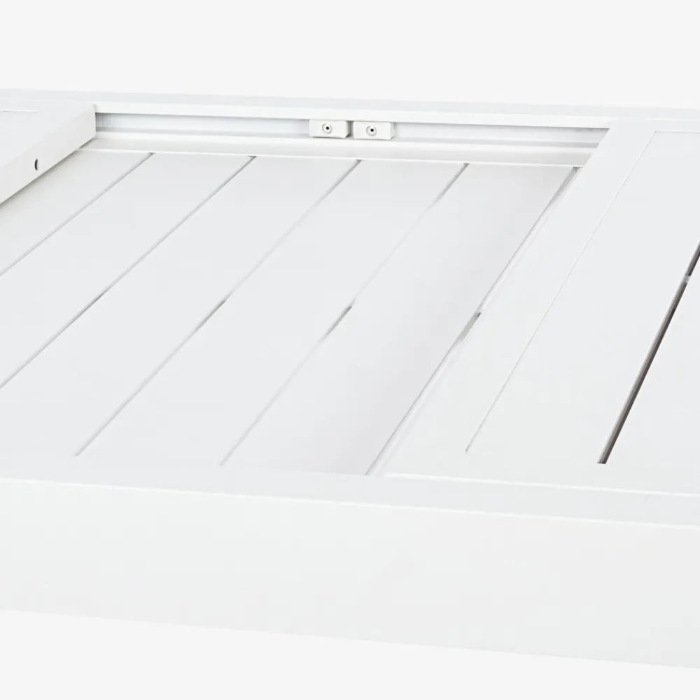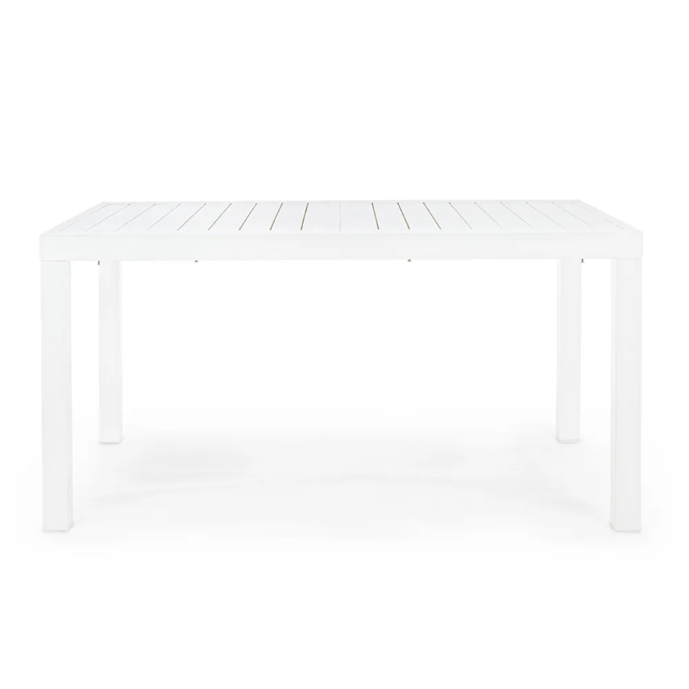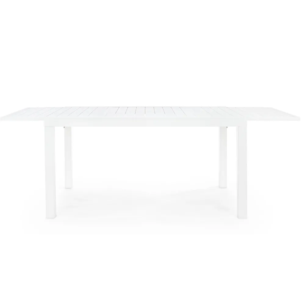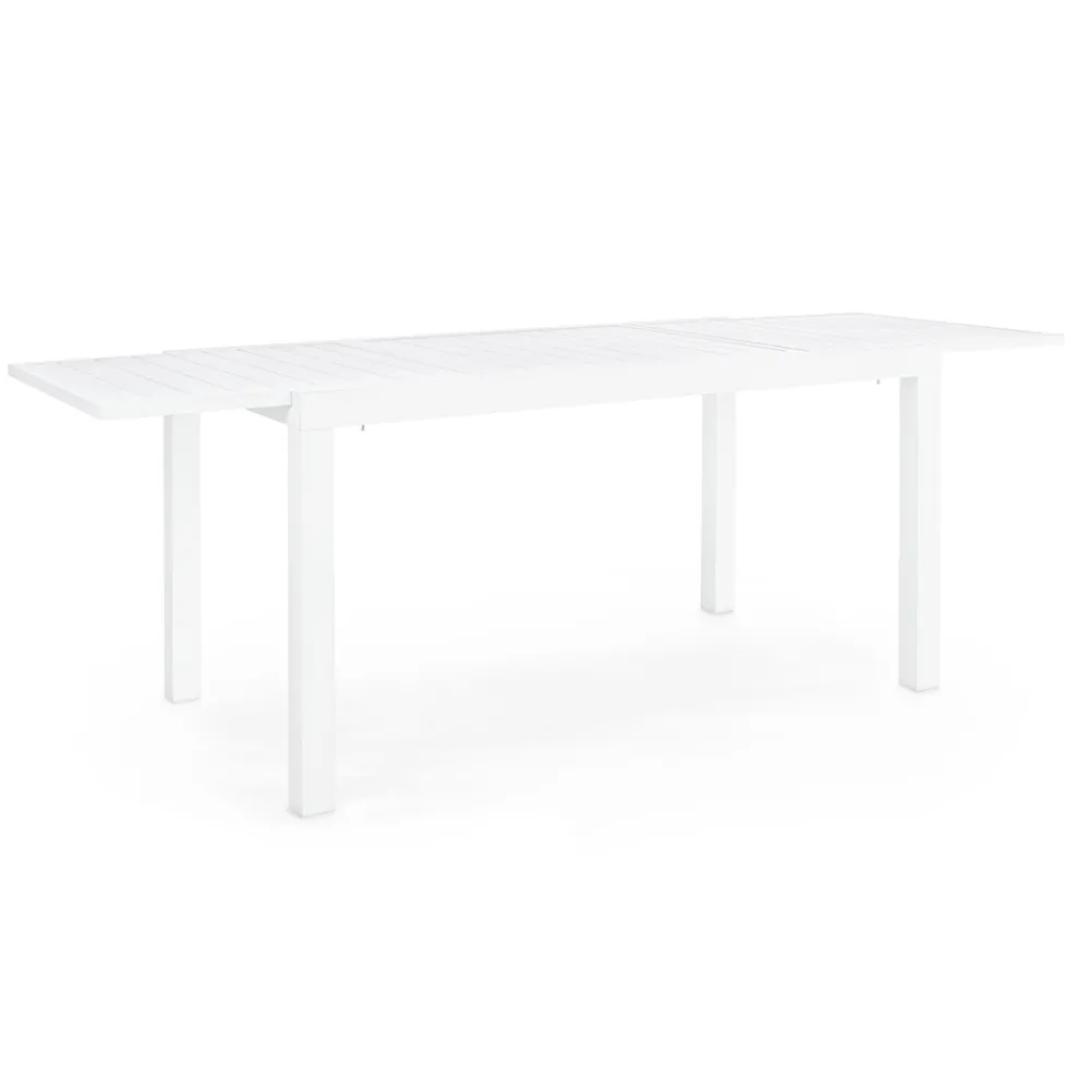 Außentisch ausziehbar bis 240 cm aus weißem oder taubengrauem Aluminium.