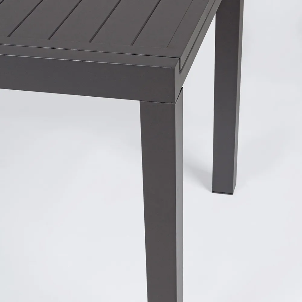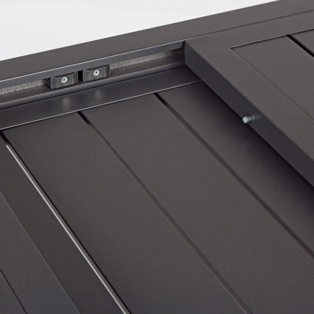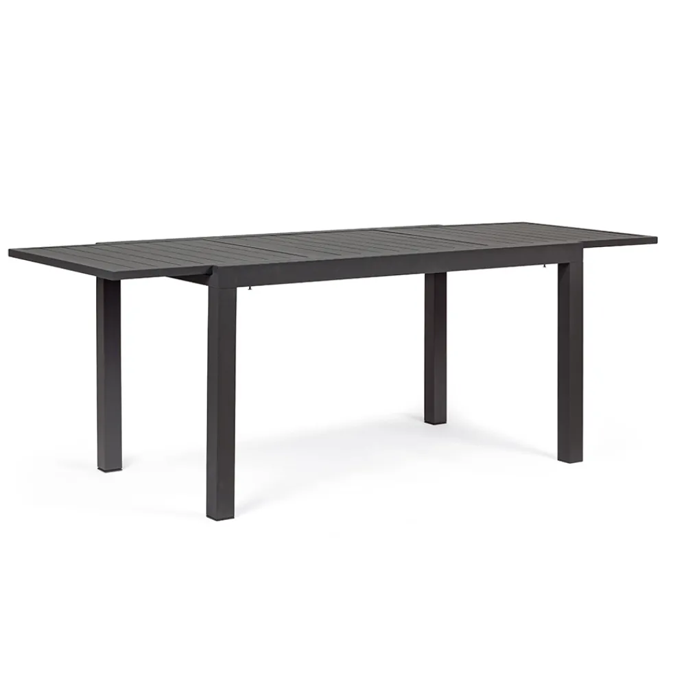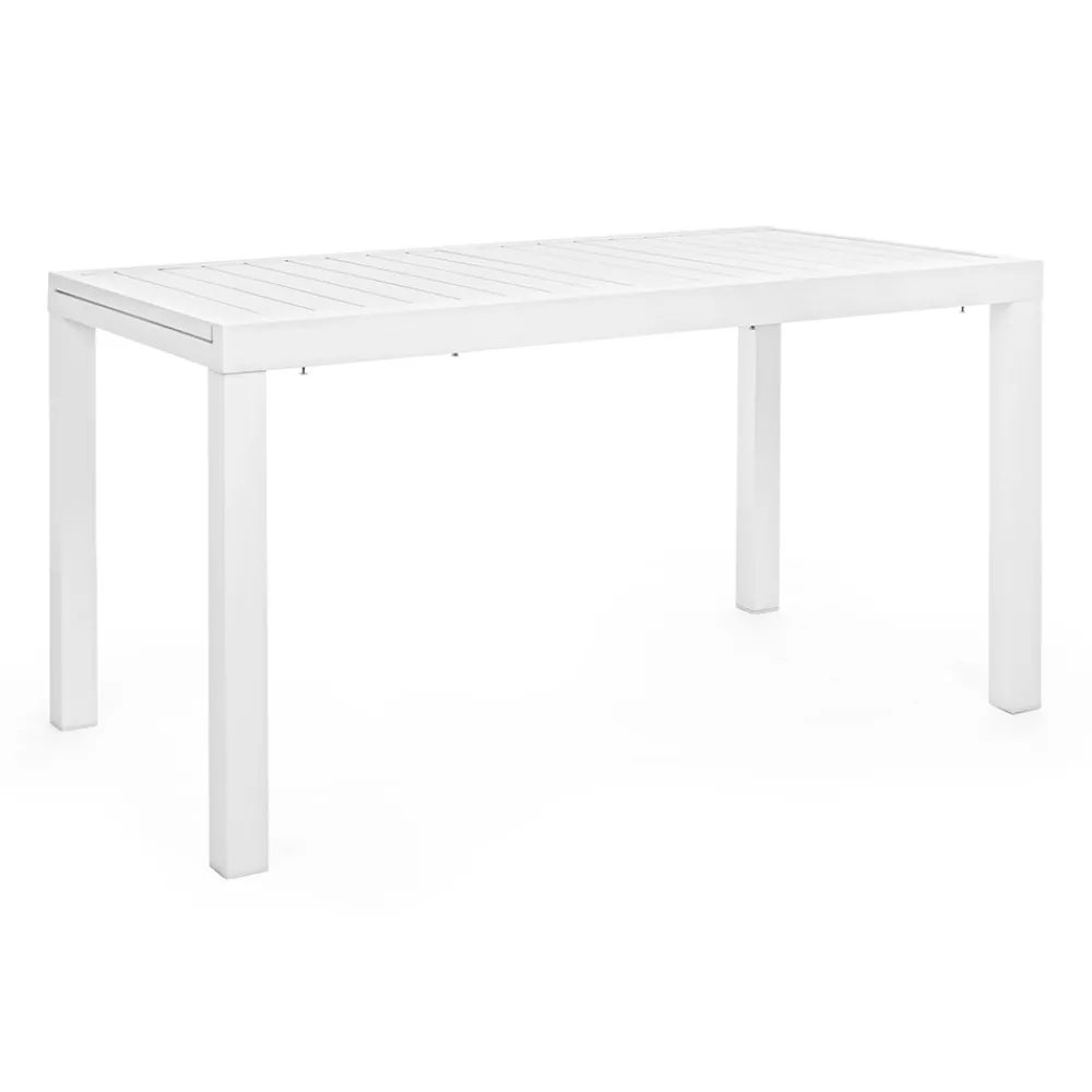 Außentisch ausziehbar bis 240 cm aus weißem oder taubengrauem Aluminium.