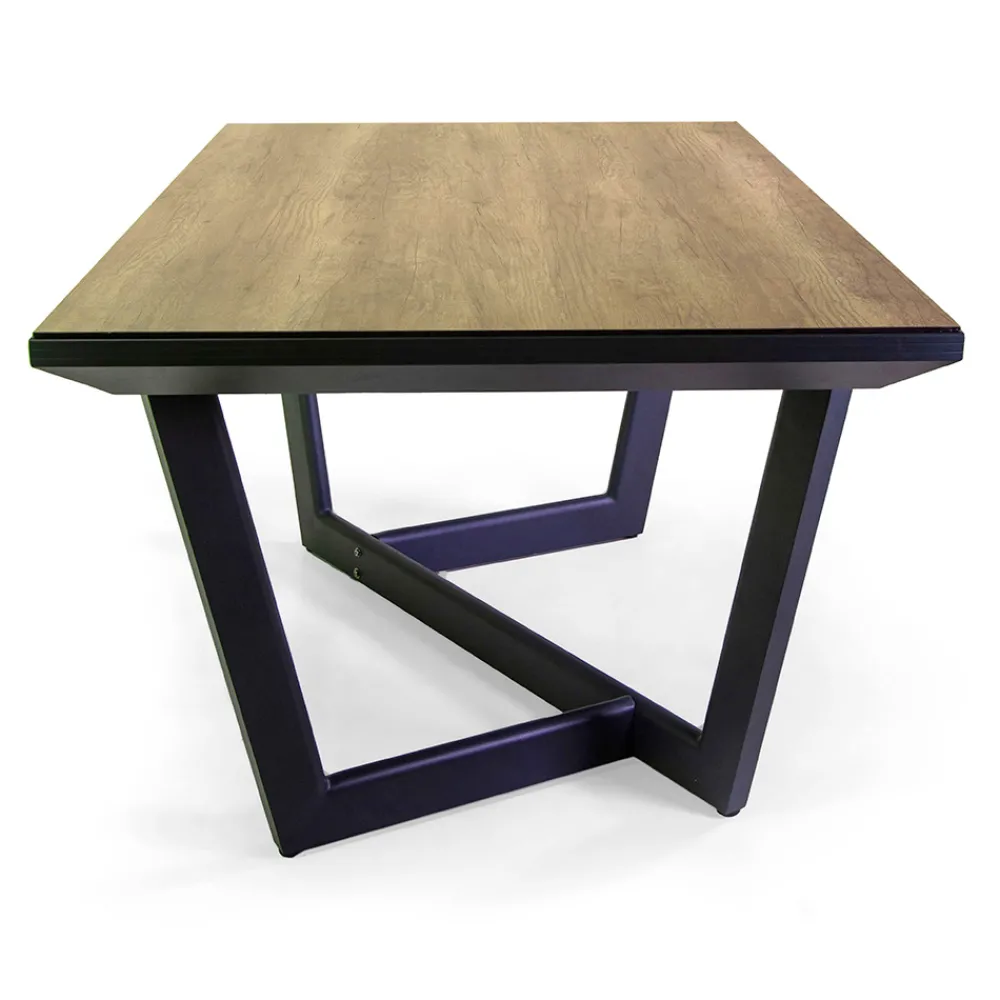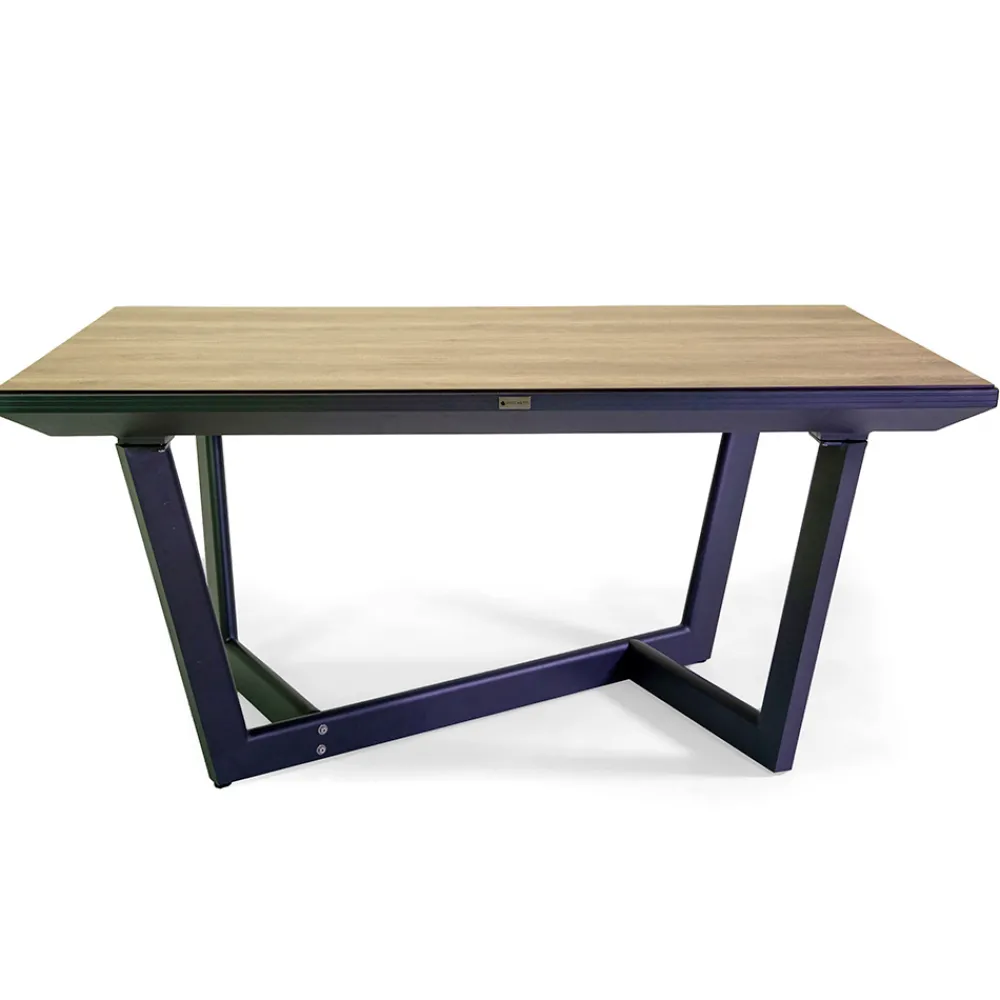 Tisch für den Außenbereich mit anthrazit pulverbeschichtetem Aluminiumgestell, 6mm HPL-Platte und doppelter automatischer Seitenöffnung.