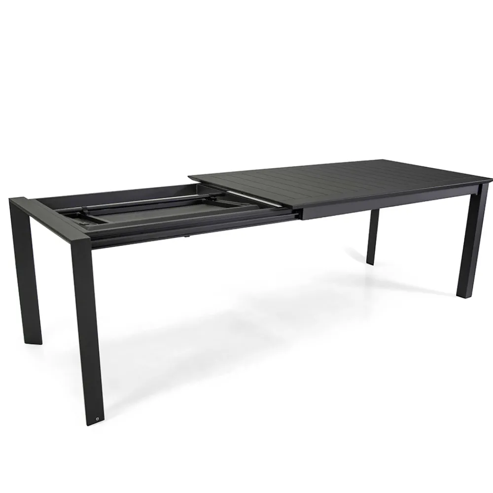 Ausziehbarer Tisch für den Außenbereich komplett aus Aluminium.