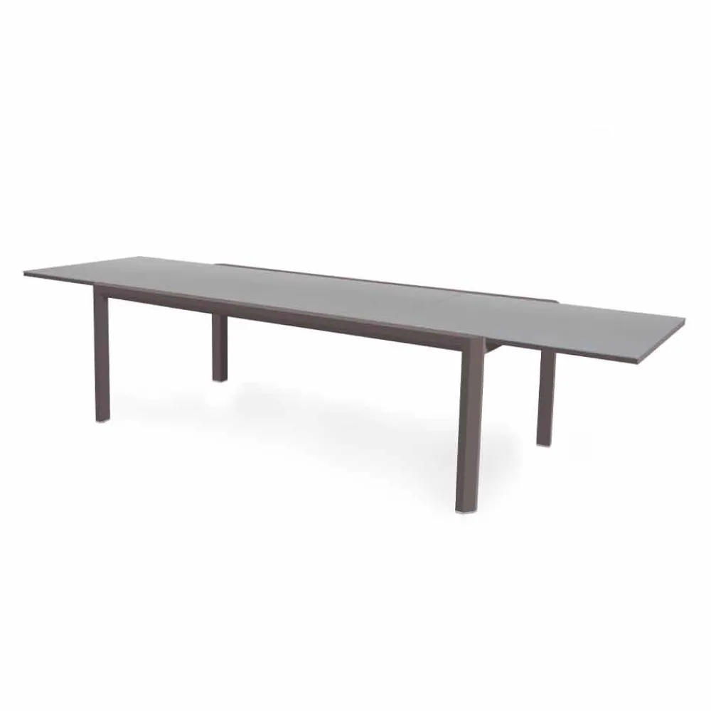 Esstisch im Freien ausziehbar auf 340 cm, Aluminiumstruktur in 3 Ausführungen und Glas- oder Laminamplatte.
