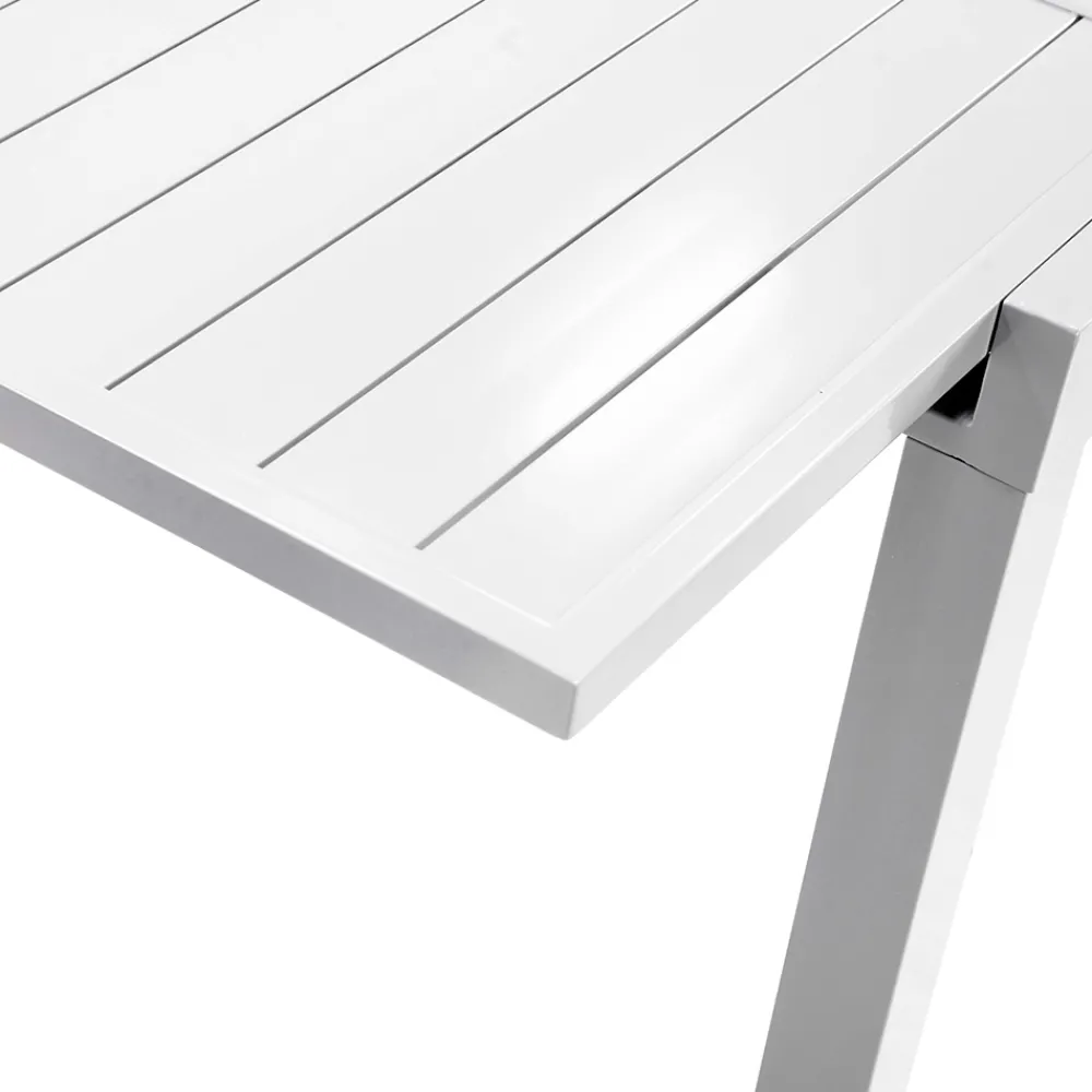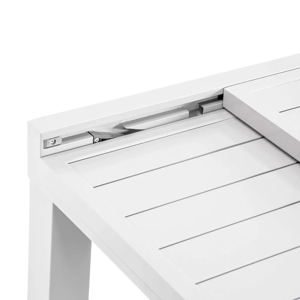 Dieser ausziehbare Aluminiumtisch zeichnet sich durch ein klares und modernes Design aus, ideal für alle, die eine vielseitige und langlebige Lösung für Außenbereiche suchen. Dieser Tisch bietet nicht nur eine robuste und leicht zu reinigende Oberfläche, sondern auch eine Ästhetik, die perfekt zu jedem Stil von Außenmöbeln passt.