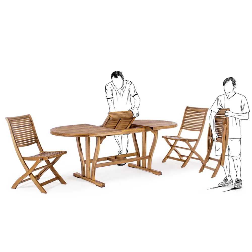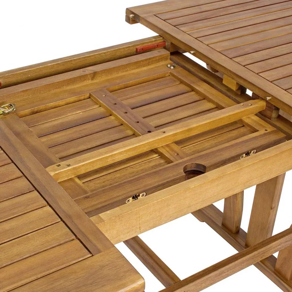 Ausziehbarer Tisch im Freien bis 200 cm aus Holz.