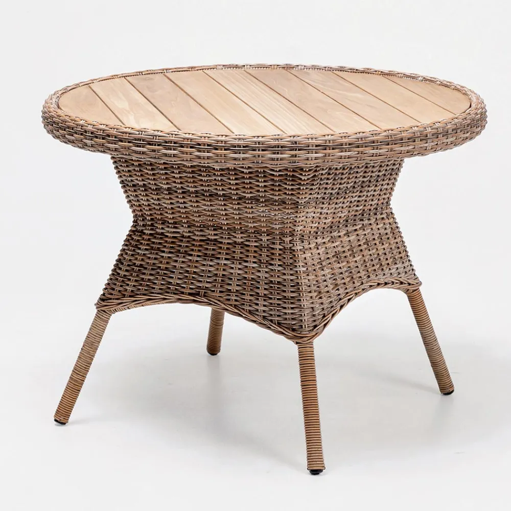 Gartentisch aus Aluminium, HQ-Polyrattan-Geflecht und breiter Platte aus natürlichem Teakholz