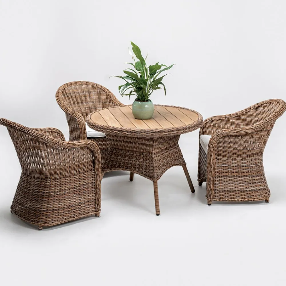 Polyrattanfasern sind die hochwertigsten auf dem Markt erhältlichen (VIRO/REHAU). Sie bestehen aus einem speziellen Polyethylen hoher Dichte (HDPE) und sind zertifiziert, um Witterungseinflüssen und selbst extremen Klimafaktoren zu widerstehen, ohne dass die Struktur wesentlich beschädigt wird und die Farbechtheit erhalten bleibt. Wir empfehlen, diese Fasern bei Bedarf mit Mikrofasertüchern, neutralen Reinigungsmitteln und warmem Wasser zu reinigen.