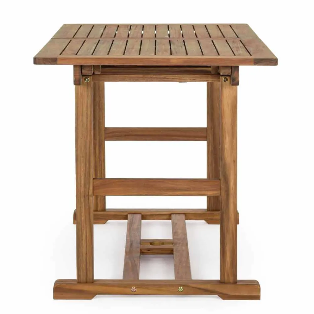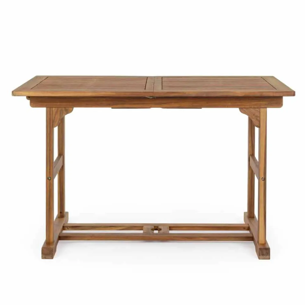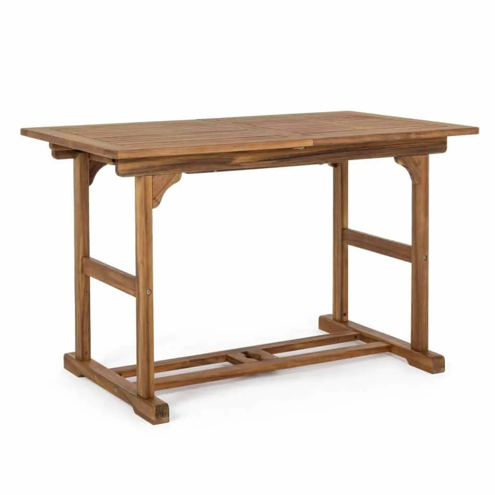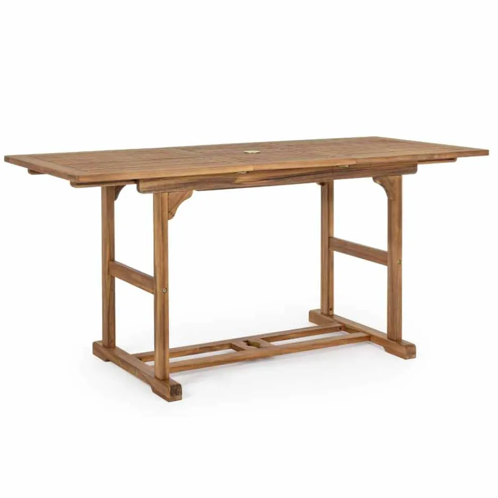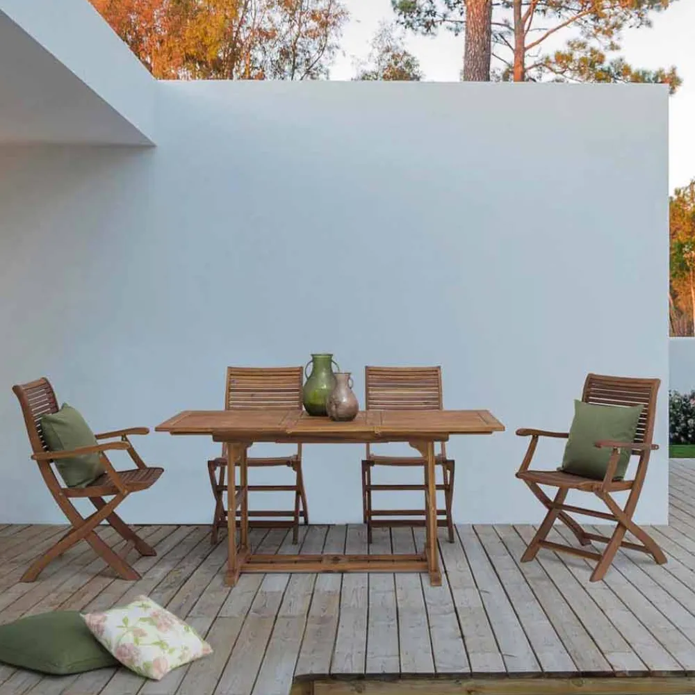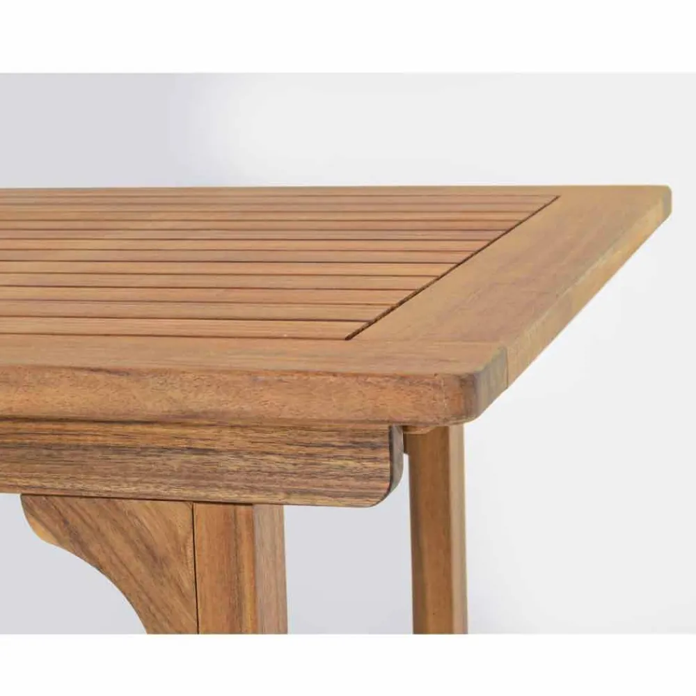 Ausziehbarer Esstisch im Freien aus Akazienholz.