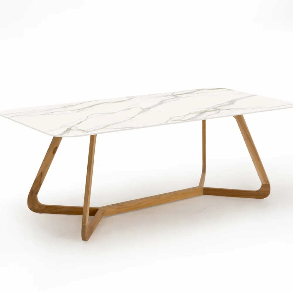 Rechteckiger Gartentisch aus Holz und Keramik Made in Italy