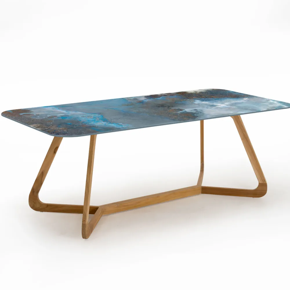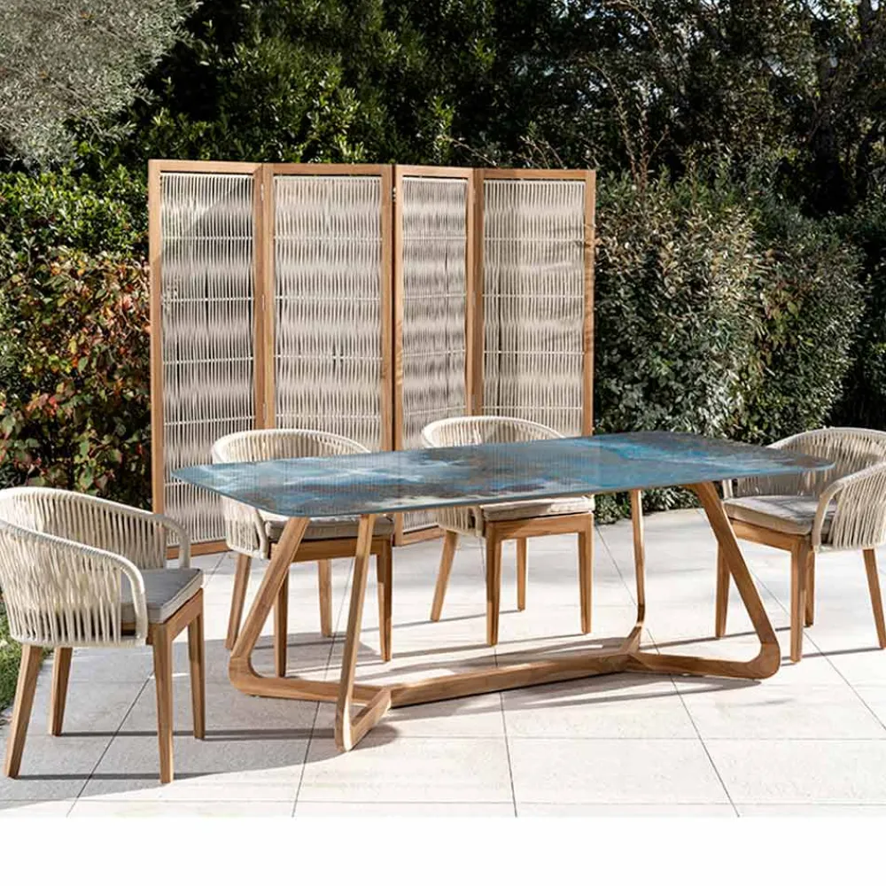 Rechteckiger Gartentisch aus Holz und Keramik Made in Italy