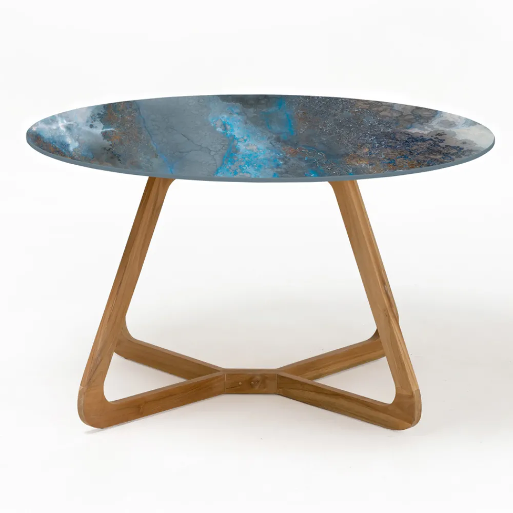 Runder Gartentisch aus Holz und Keramik Made in Italy