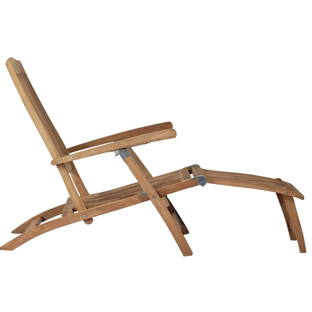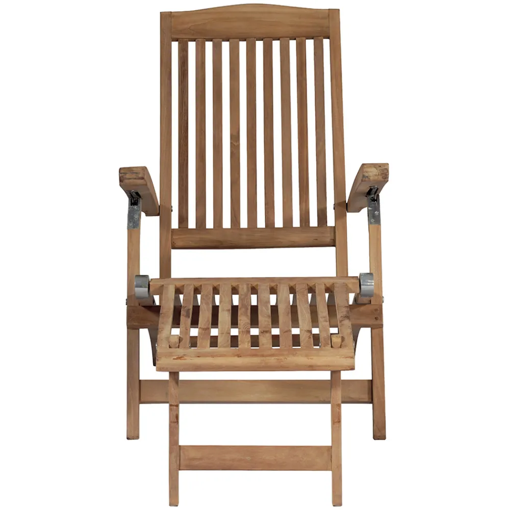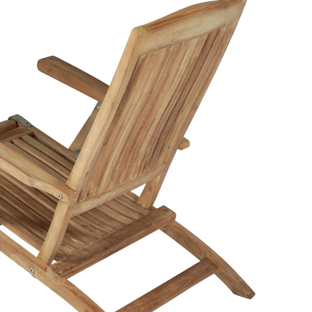Der Sessel ist verstellbar , sodass Sie die perfekte Position für maximalen Komfort finden können, egal ob Sie lesen, sonnenbaden oder ein Nickerchen machen möchten. Die ergonomischen Latten bieten optimale Unterstützung, während die massive Teakholzstruktur Stabilität und Robustheit gewährleistet.