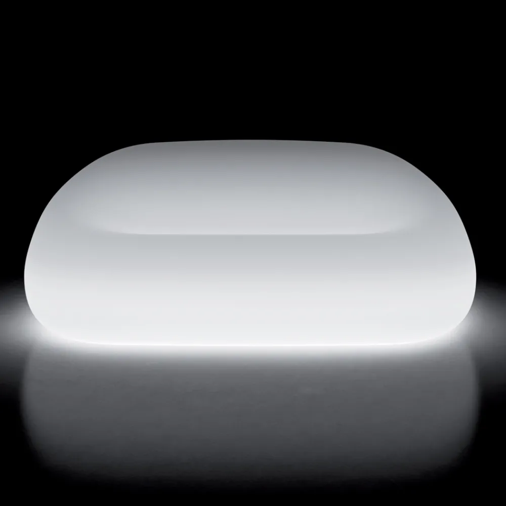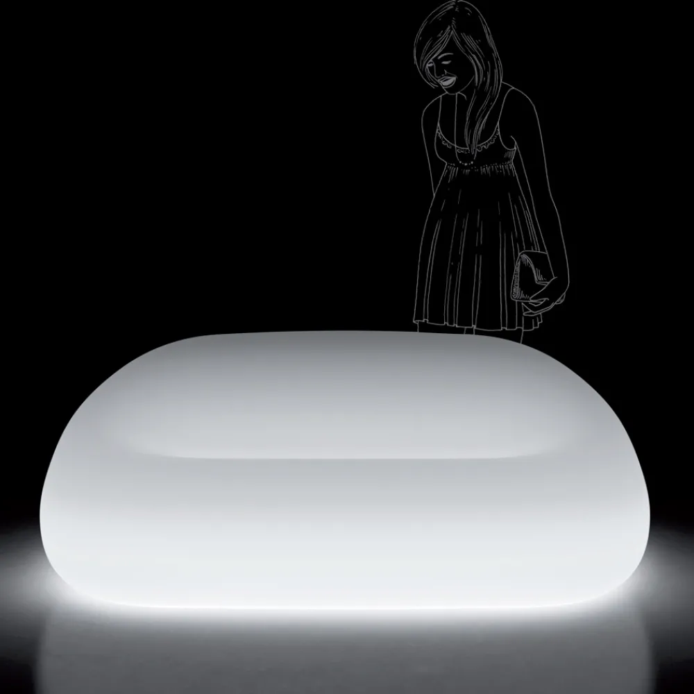Dieses Outdoor-Sofa zeichnet sich durch weiche und einhüllende Linien aus und passt perfekt in die unterschiedlichsten Umgebungen, um das Zentrum der Aufmerksamkeit zu erobern. Dieses vollständig in Italien hergestellte Produkt weist dank des verwendeten Materials Polyethylen eine hervorragende Stabilität und Festigkeit auf. Es ist in der opaken Version erhältlich, die sich durch hervorragende Beständigkeit gegen Sonne, Stöße und Hitze auszeichnet, oder in der widerstandsfähigen und hell lackierten Version, mit der Sie Spiel erzeugen können von Licht und Reflexionen. Dank seines einzigartigen und innovativen Designs und der Beleuchtung durch das LED-Licht gelingt es ihm, Funktionalität und einen wunderbaren visuellen und dekorativen Aspekt zu kombinieren.
