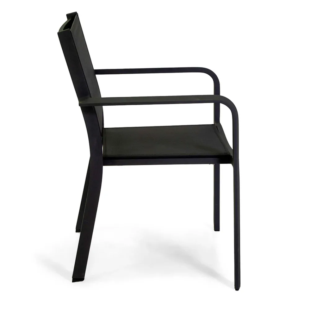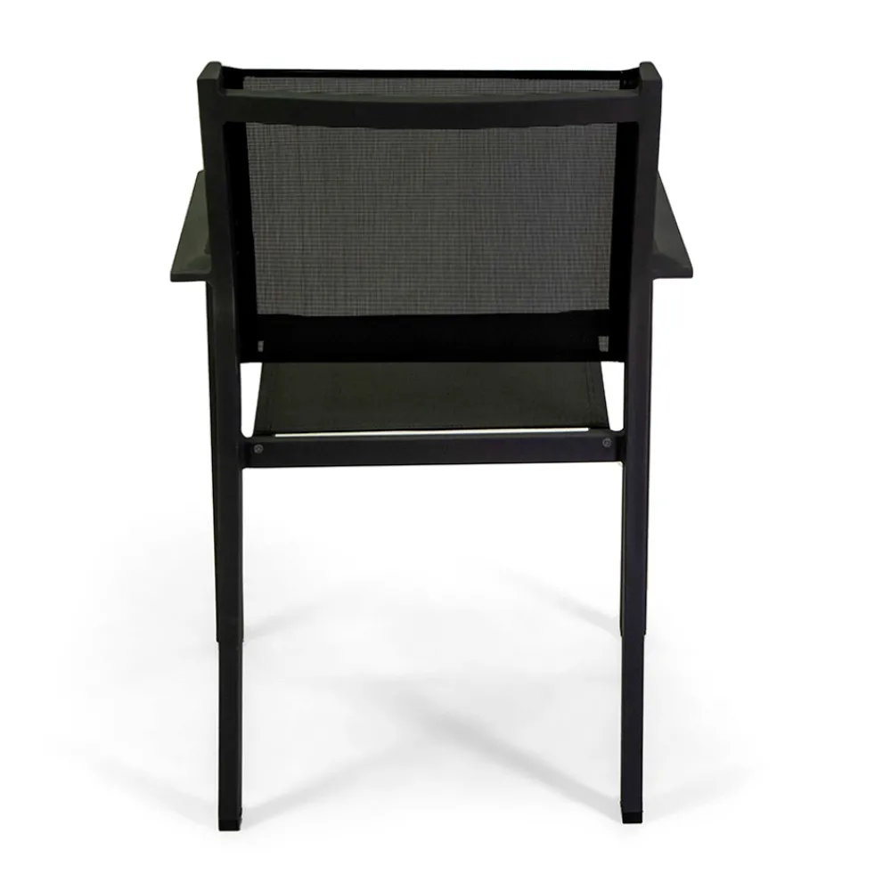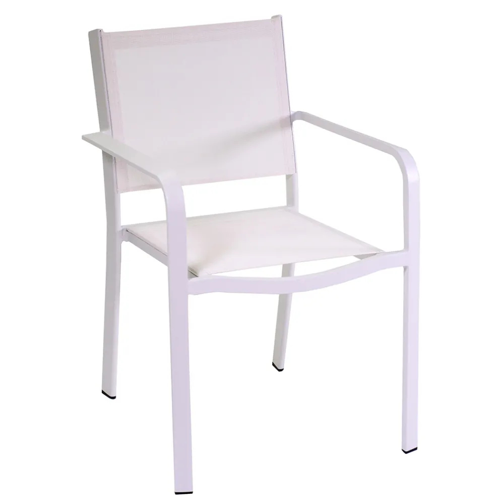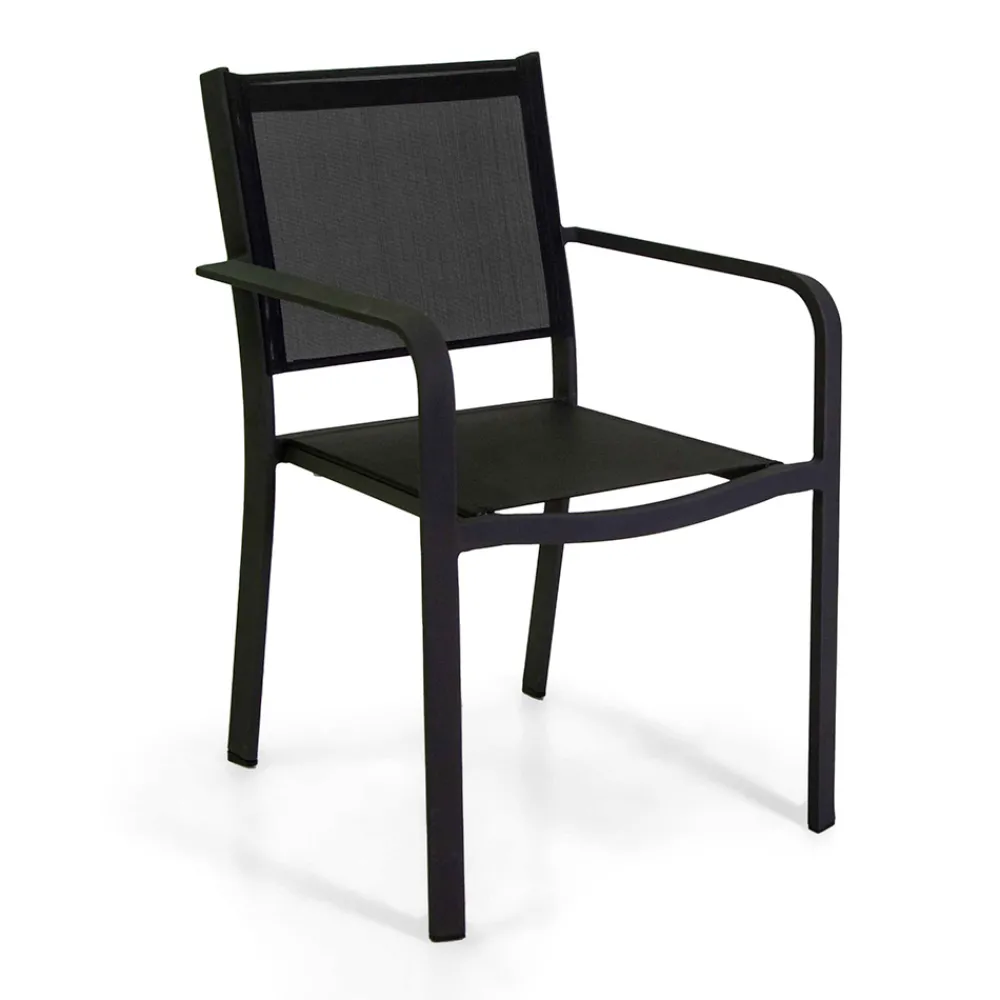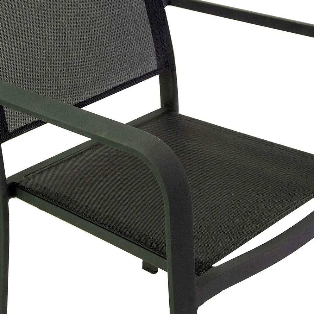Sessel mit Sitz und Rückenlehne aus Textilene und Aluminiumstruktur.